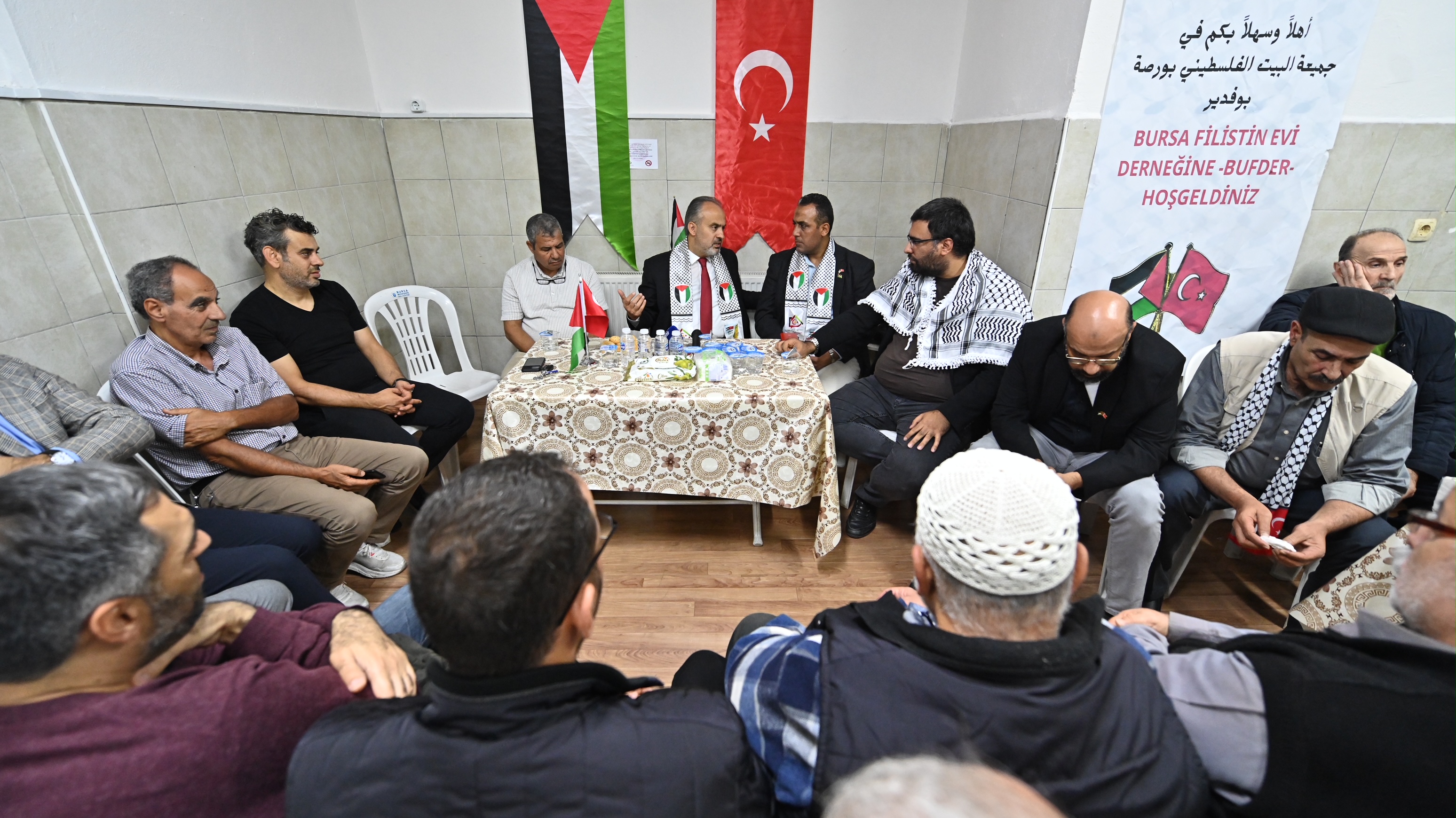 Sivil katliamının durdurulması yönünde dünyadan yükselen çağrılara rağmen İsrail güçleri, günlerdir ayrım yapmadan Gazze'yi bombalamaya devam ediyor. Bebek, çocuk, kadın demeden dünyanın gözü önünde tarihin en büyük katliamlarından birini yapan İsrail, 5 binden fazla insanı öldürürken, 15 binden fazla insanın da yaralanmasına sebep oldu. Amerika ve Avrupa’nın desteğini alarak soykırım suçu işleyen İsrail, hastane, konut, cami, kilise, pazar yeri ayırt etmeksizin Gazze’ye bomba yağdırmaya devam ediyor. Dünya genelinde vatandaşlar nezdinde tepkiler çığ gibi büyürken, kan ve gözyaşı ile yoğrulan topraklardan binlerce kilometre uzaktaki Bursa’daki Filistin Evi Derneği’nde de bölgedeki gelişmeler an be an takip ediliyor. Bursa Büyükşehir Belediye Başkanı Alinur Aktaş da Filistin Evi Derneği’ni ziyaret ederek yakınları şehit edilen Filistinlilere taziyede bulundu. Türk ve Filistin bayraklarıyla donatılan dernek binasında, şehitler için dualar okundu.