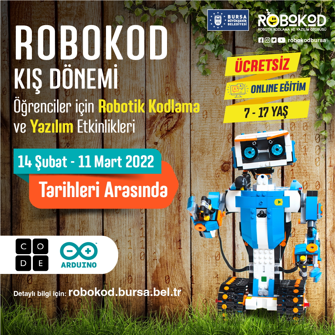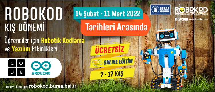 Kış kursu eğitimlerine (EĞİTİMLER | Robokod (bursa.bel.tr)) adresinden kayıt yaptırılabilecek.