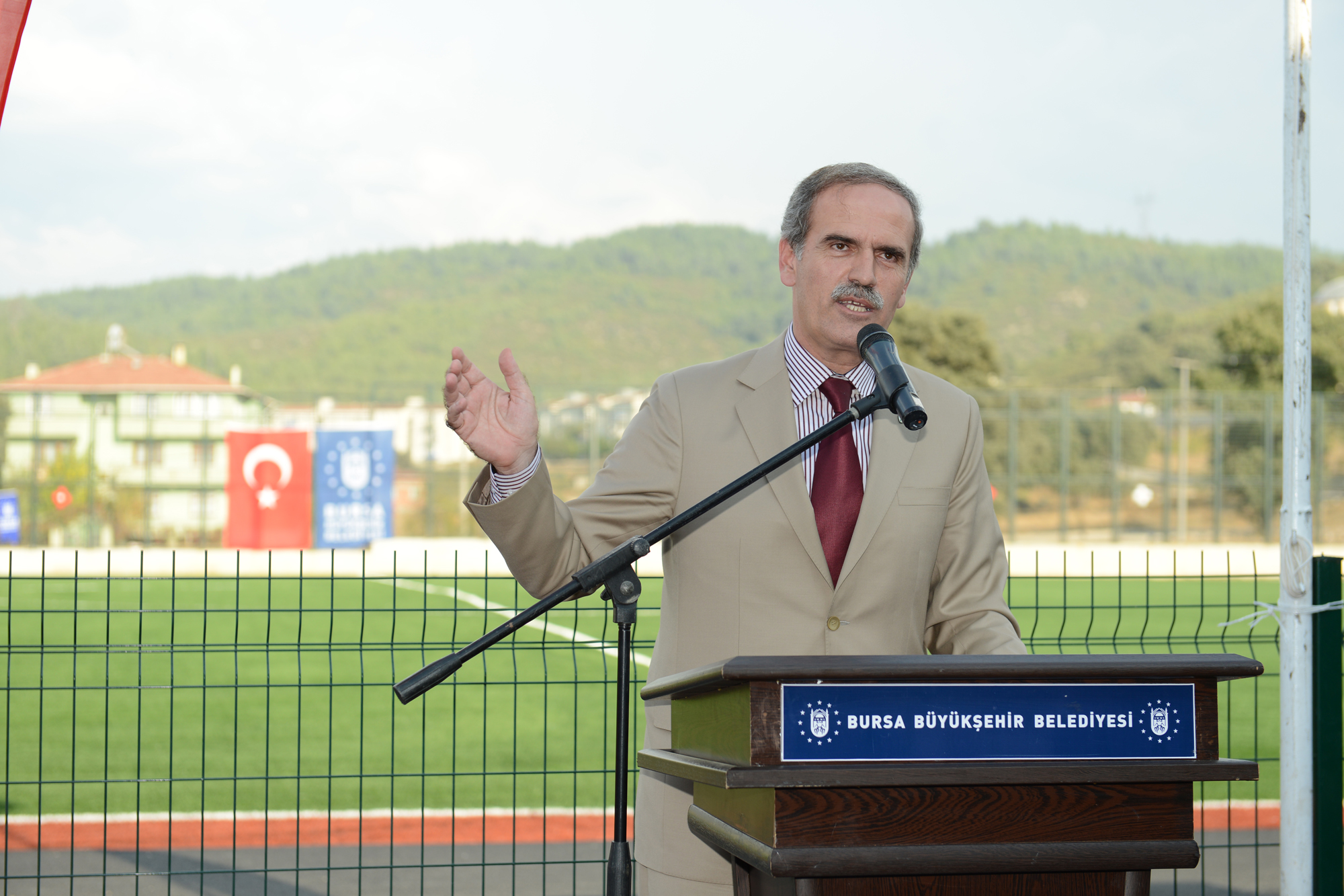 Büyükşehir Belediye Başkanı Recep Altepe, sahanın Orhaneli halkı için hayırlı olmasını diledi. 3.5 yıl boyunca 4 dönemde yapılamayan hizmetleri yaptıklarını, gerçekleştirdikleri belirten Başkan Altepe, kendilerini en mutlu eden hizmetlerin spora yapılan yatırımlar olduğunu söyledi. Başkan Altepe, "Gerçekten Orhaneli´ye yakışan bir tesis oldu. Burada toprak zeminde drenaj çalışmaları yapıldı. Sahanın etrafı duvarlar ve korkuluklarla çevrilerek, tüm tribün ve bölgeler elden geçirildi. Saha FIFA standartlarında 55 milimetre kalınlığında, çimle kaplandı. Federasyon maçlarının oynanabileceği, 68´e 105 ölçülerinde nizami bir futbol sahası oldu. Artık burada maç yapmak, Orhaneliler için büyük bir zevk olacak. Hayırlı uğurlu olsun" dedi.