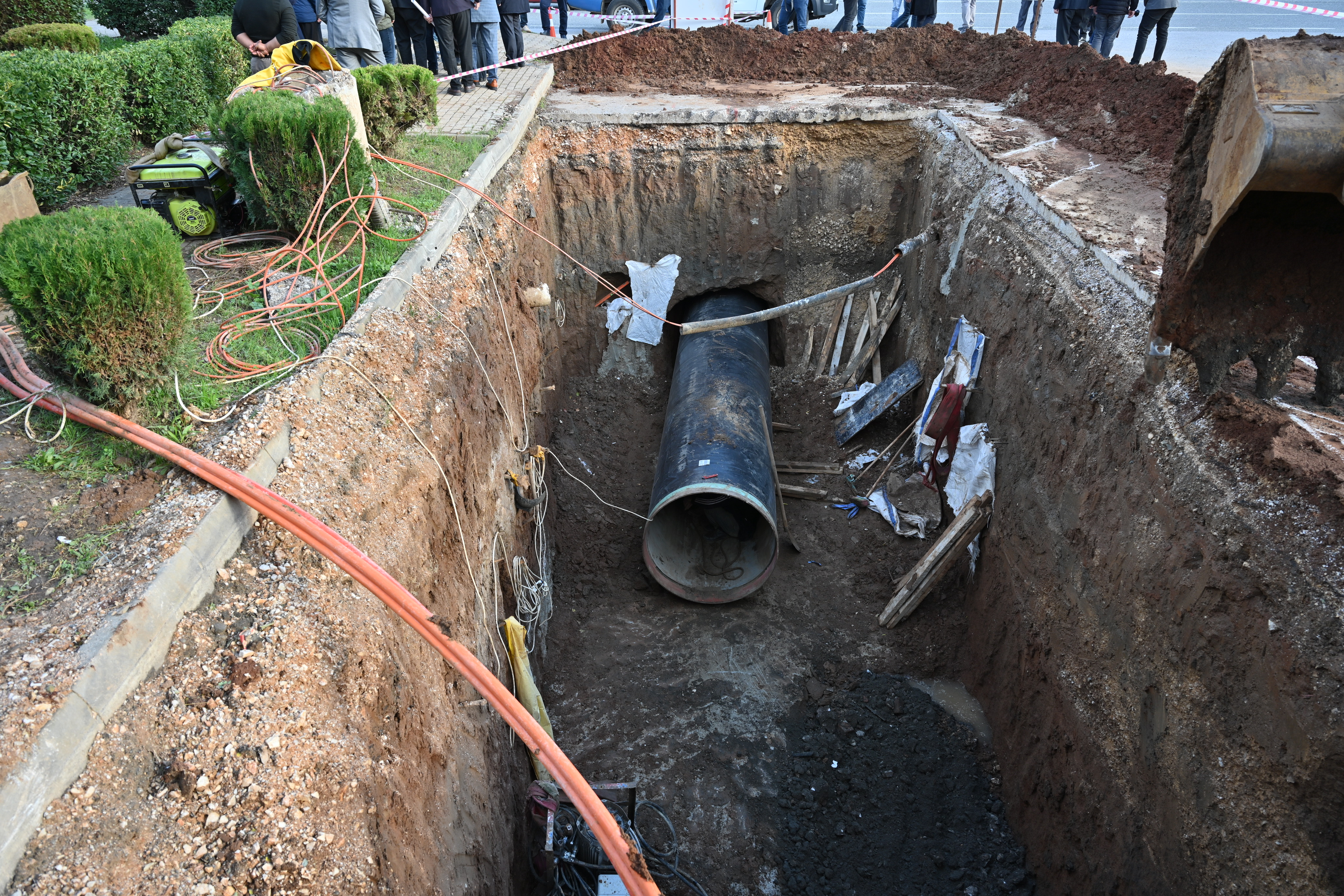 Bursa Büyükşehir Belediye Başkanı Alinur Aktaş, BUSKİ marifetiyle Bursa’nın her köşesinde çalışmalar yapıldığını hatırlattı. Suyun daha tasarruflu kullanılması, kayıp kaçağın önüne geçilmesi ve yağmur sularının şehre sıkıntı oluşturmaması adına önemli projeleri hayata geçirdiklerini söyleyen Başkan Alinur Aktaş, Orhangazi ilçesinde, göreve geldiği günden bu kadar yaklaşık 6 yıllık süreç zarfında yapılan çalışmalar hakkında bilgi verdi. 95 kilometre şebeke hattı, pınar kaynağı ve isale hattı olmak üzere 128 kilometre içme suyu hattı çalışması yapıldığını belirten Başkan Aktaş, “Atık suları da kontrol altına aldık ve 27 kilometre kanalizasyon, 14 kilometre yağmur suyu hattı döşedik. Olası sel ve su baskınlarına karşı ilçede 1200 metre dere temizliği yaptık. Orhangazi’de 8 adet içme suyu deposu inşa ederek yaz aylarında tankerle su taşınan pek çok mahalleyi suyla buluşturduk. Atık Su Arıtma Tesisi’nin kapasitesini artırarak doğaya deşarj edilen bütün atık suları arıtmadan geçiriyoruz. Muradiye Mahallesi’nde yapımı devam eden yağmur suyu inşaatını incelemek için Orhangazi’deyiz. Toplam maliyeti 1 milyon TL olan bu proje kapsamında toplamda 50 metre delgi ve 150 metre yağmur suyu imalatı yapacağız. Bu imalat neticesinde Hürriyet Mahallesi’nin ve Tekke Mahallesi’nin daha önce yapılmış olan yağmur suyu hatlarının deşarjını karşı aksa sağlamış olacağız. 600’lük bir hattımız vardı. Bununla beraber 800’lük bir hattımız daha oldu. Bu yatırımla bölge tamamen rahatlamış olacak” diye konuştu.