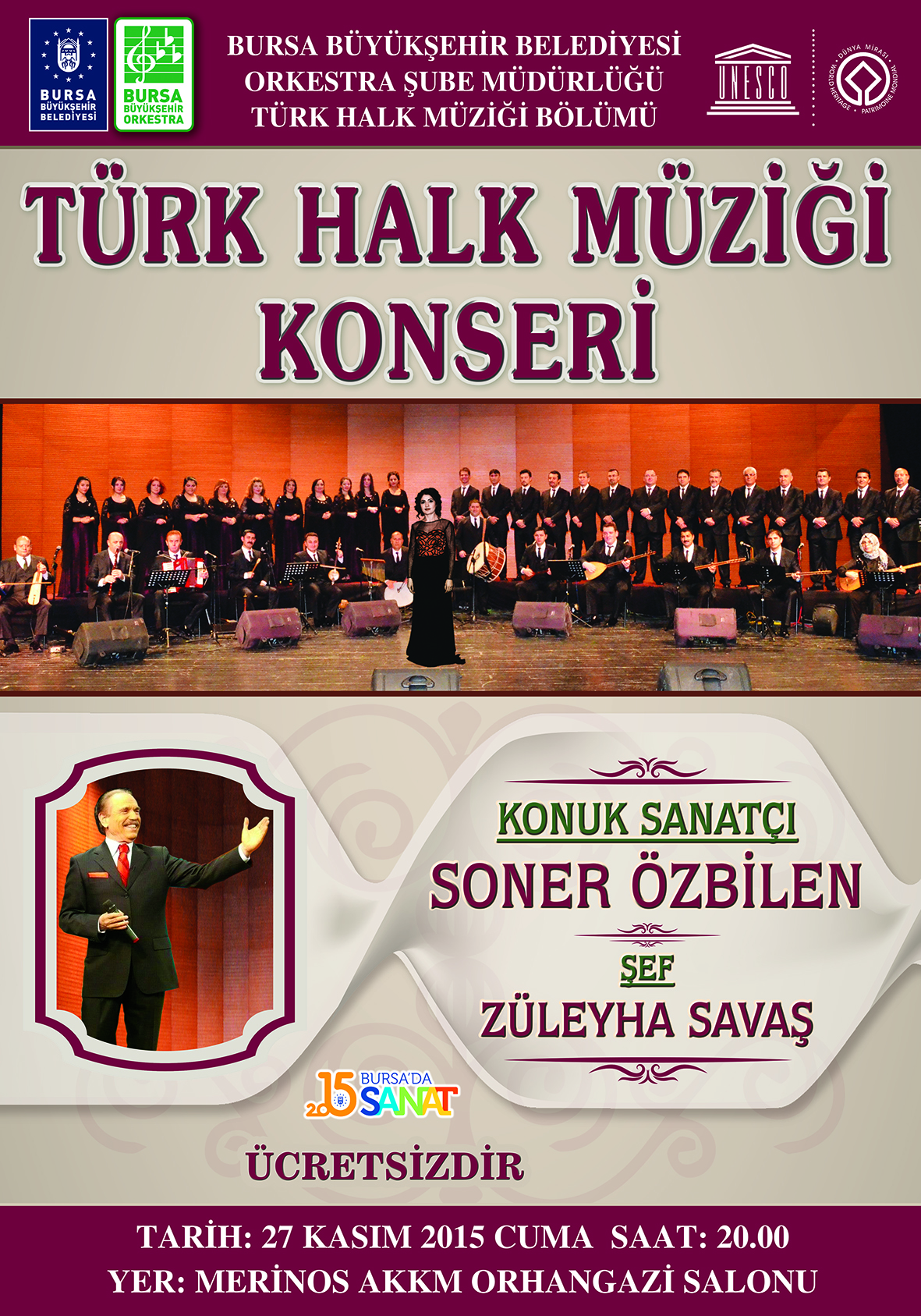- Bursa Büyükşehir Belediyesi Orkestra Şube Müdürlüğü Türk Halk Müziği Bölümü, yeni sanat sezonu konserlerine başlıyor.
