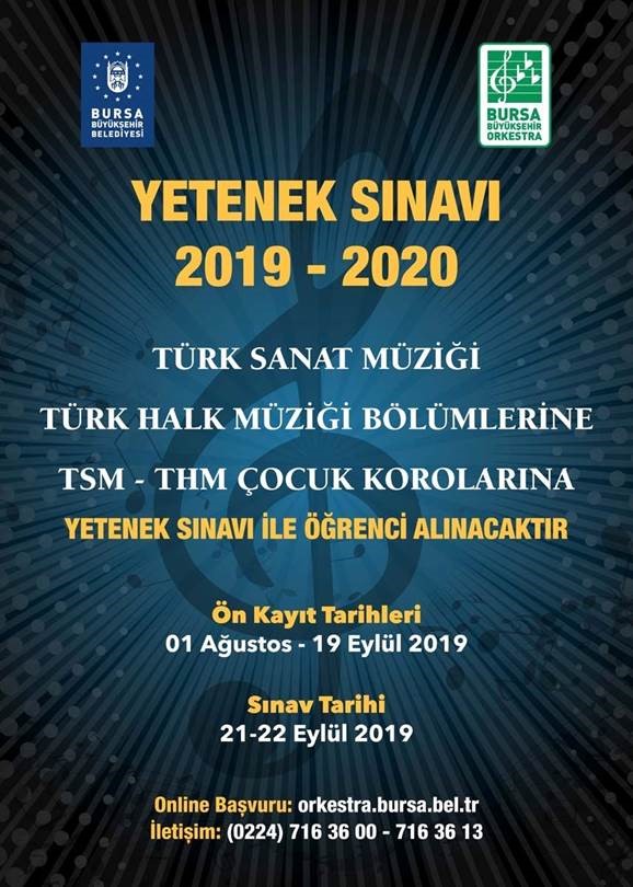 BURSA – Bursa Büyükşehir Belediyesi Orkestrası, 2019 – 2020 eğitim ve öğretim yılında müzikal yeteneğini ortaya çıkarmak isteyen öğrencilerini bekliyor.