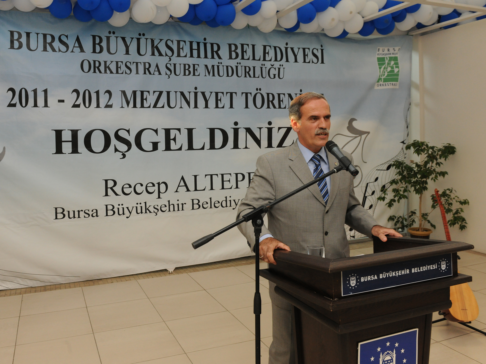 - BURSA BÜYÜKŞEHİR BELEDİYE ORKESTRASI’NDA TÜRK SANAT MÜZİĞİ VE TÜK HALK MÜZİĞİ DALLARINDA 4 YILLIK EĞİTİMLERİNİ TAMAMLAYARAK MEZUN OLAN 80 ÖĞRENCİ, SERTİFİKALARINI BÜYÜKŞEHİR BELEDİYE BAŞKANI RECEP ALTEPE’NİN ELİNDEN ALDI.