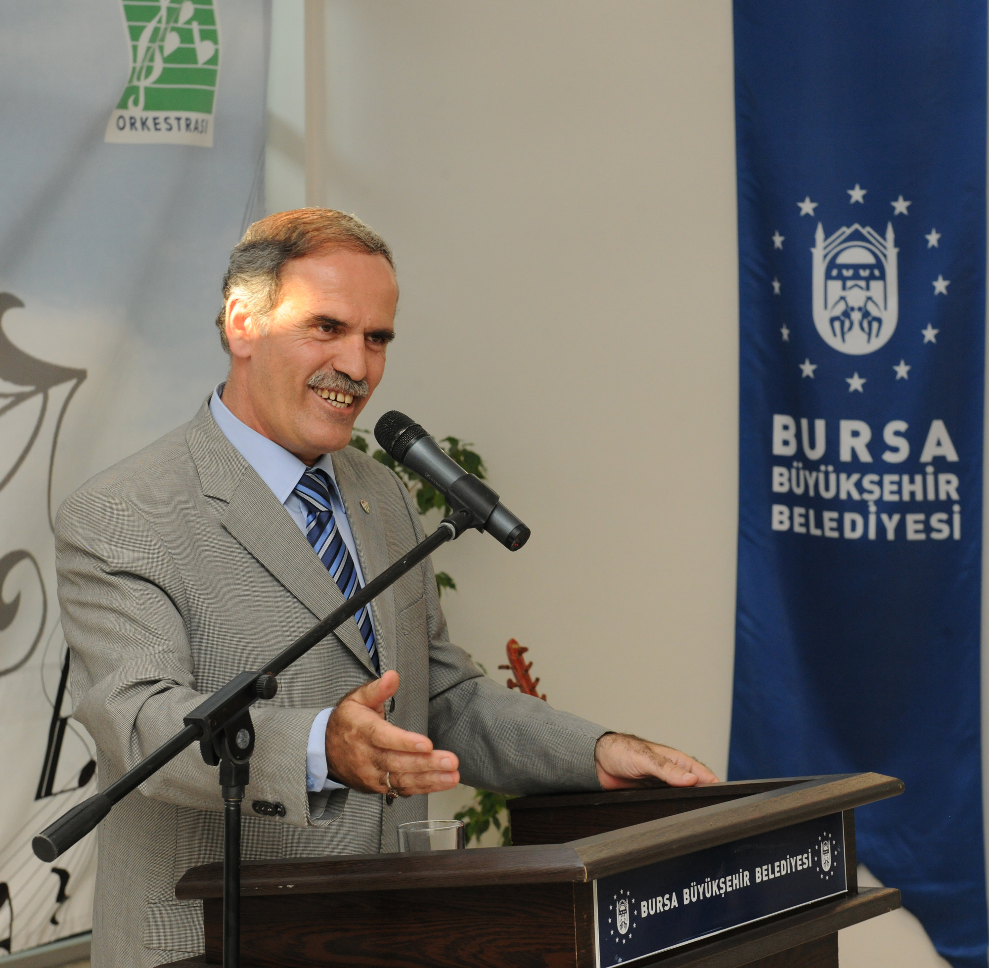 Bursa Büyükşehir Belediye Başkanı Recep Altepe, konservatuvar eğitimlerini tamamlayan 80 sanatçı adayına sertifikalarının verildiği törende, Büyükşehir Belediye Orkestrası’nın tarihi boyunca çok önemli sanatçıları Bursa’ya kazandırdığını söyledi. Başkan Altepe, Türk Sanat Müziği’nden 42, Türk Halk Müziği’nden de 38 öğrencinin eğitimlerini başarıyla tamamlayıp sertifika almaya hak kazandığını belirterek, “Kentler, kültürlerin ve medeniyetlerin yatağıdır. Bursa’da binlerce yıllık medeniyetin ortaya çıkarılmasında Türkiye’ye ve dünyaya örnek çalışmalar yapılıyor. Toplumsal, sosyal ve kültürel hayatın en önemli özelliklerinden biri de müziğimizdir. Büyükşehir Belediyesi olarak müzikle ilgili örnek çalışmalarımızı sürdürüyoruz” diye konuştu.