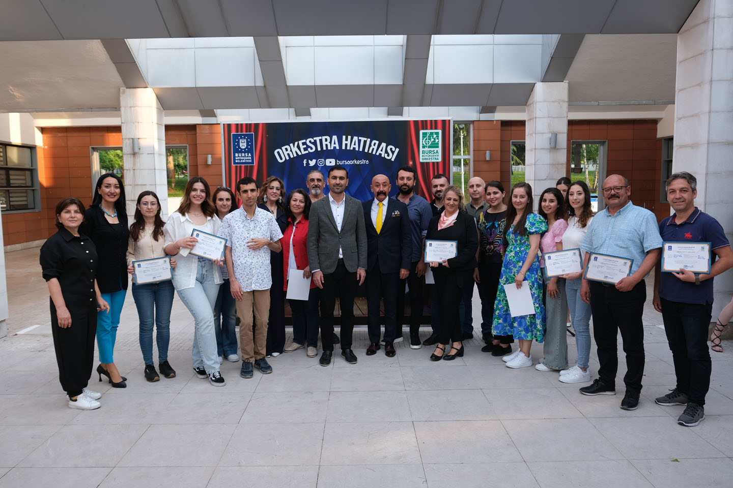 BURSA – Bursa Büyükşehir Belediyesi Orkestra Şube Müdürlüğü bünyesinde Türk Halk Müziği ve Türk Sanat Müziği bölümlerinde 4 yıllık eğitimi başarıyla tamamlayıp mezun olan öğrenciler, belgelerine kavuştu.