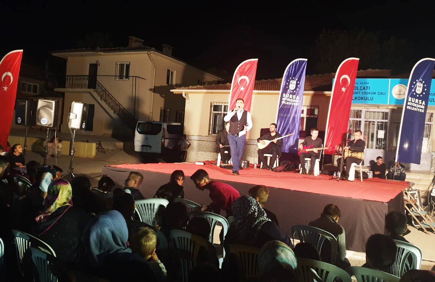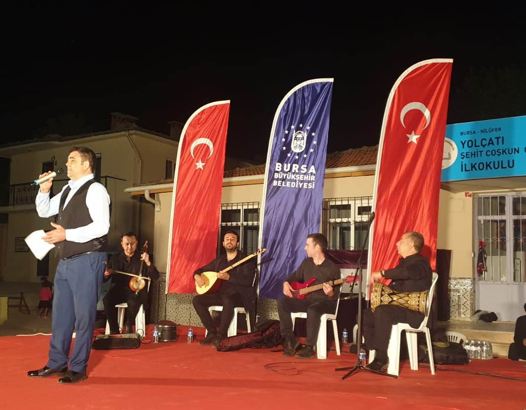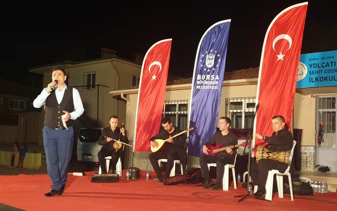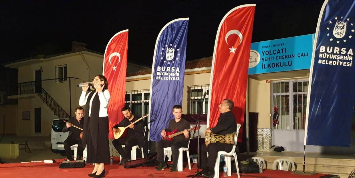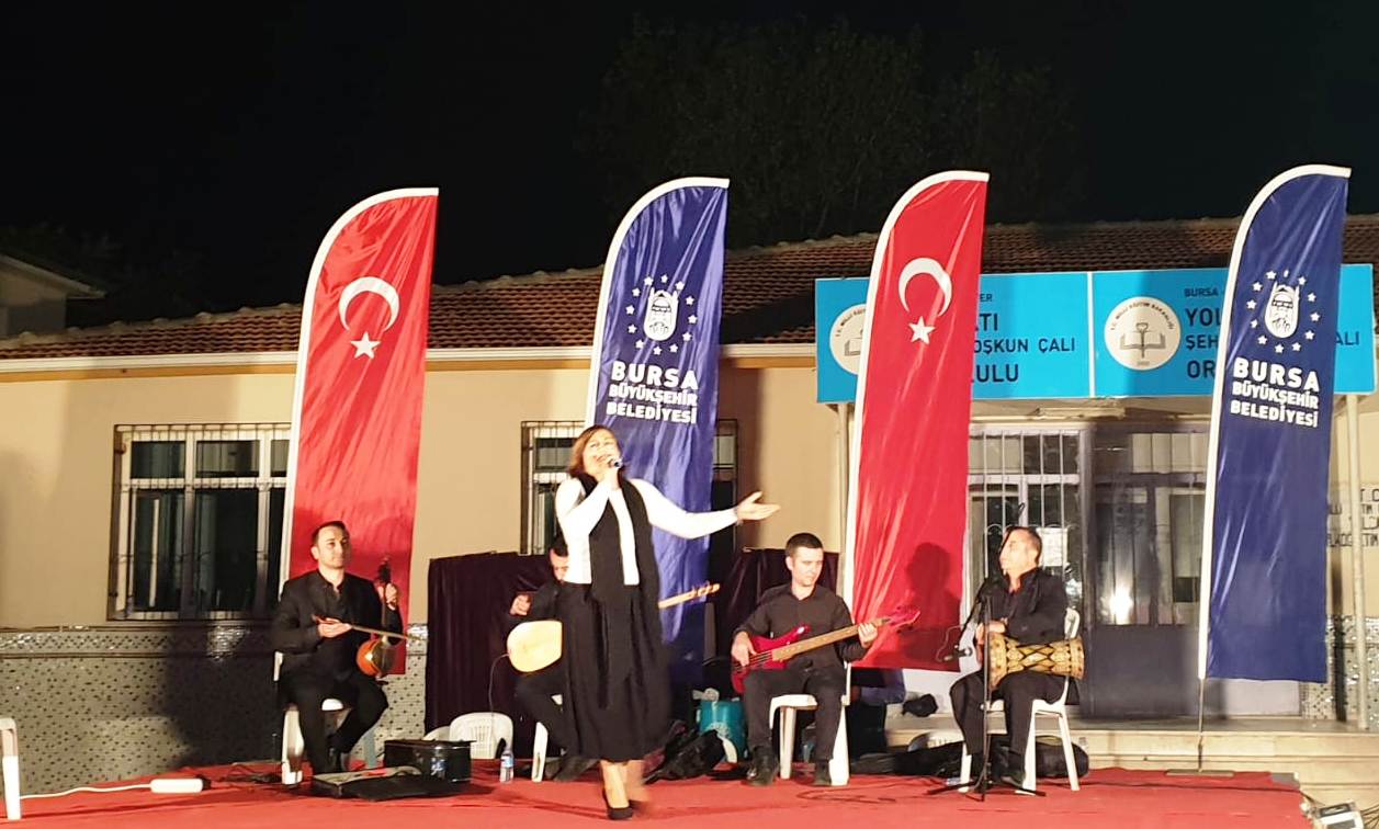 BURSA – Bursa Büyükşehir Belediyesi Kültür ve Sosyal İşler Daire Başkanlığı, Orkestra Şube Müdürlüğü’nün ‘güz konserleri’ devam ediyor. Büyükşehir Belediyesi Orkestra Şube Müdürlüğü Türk Halk Müziği sanatçıları, bu kez Yolçatı mahallesi sakinleriyle buluştu. Bursa’da Türk Halk Müziği’nin sevilen isimleri Aylin Bozkurt ve Ali Enginay, sahne performanslarıyla tam not aldı. Geçmişten günümüze unutulmayan halk ezgilerini seslendiren sanatçılar, Bozkırın Tezenesi Halk Ozanı Neşet Ertaş’ı da unutmadı. Bursa Kültür A.Ş. organizasyonu ile gerçekleştirilen konserde Ertaş’ın unutulmaz türküleri de seslendirildi. Yaklaşık 2 saat süren konserin ardından Karagöz Müzesi hayalilerinin gölge oyunu miniklerin eğlencesi oldu. Karagöz ve Hacivat’ın eğlenceli atışmaları çocukları olduğu kadar büyükleri de kahkahaya boğdu.