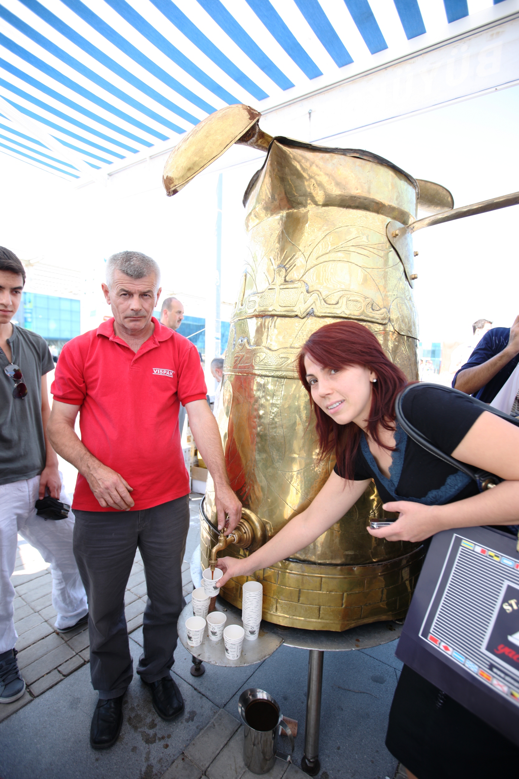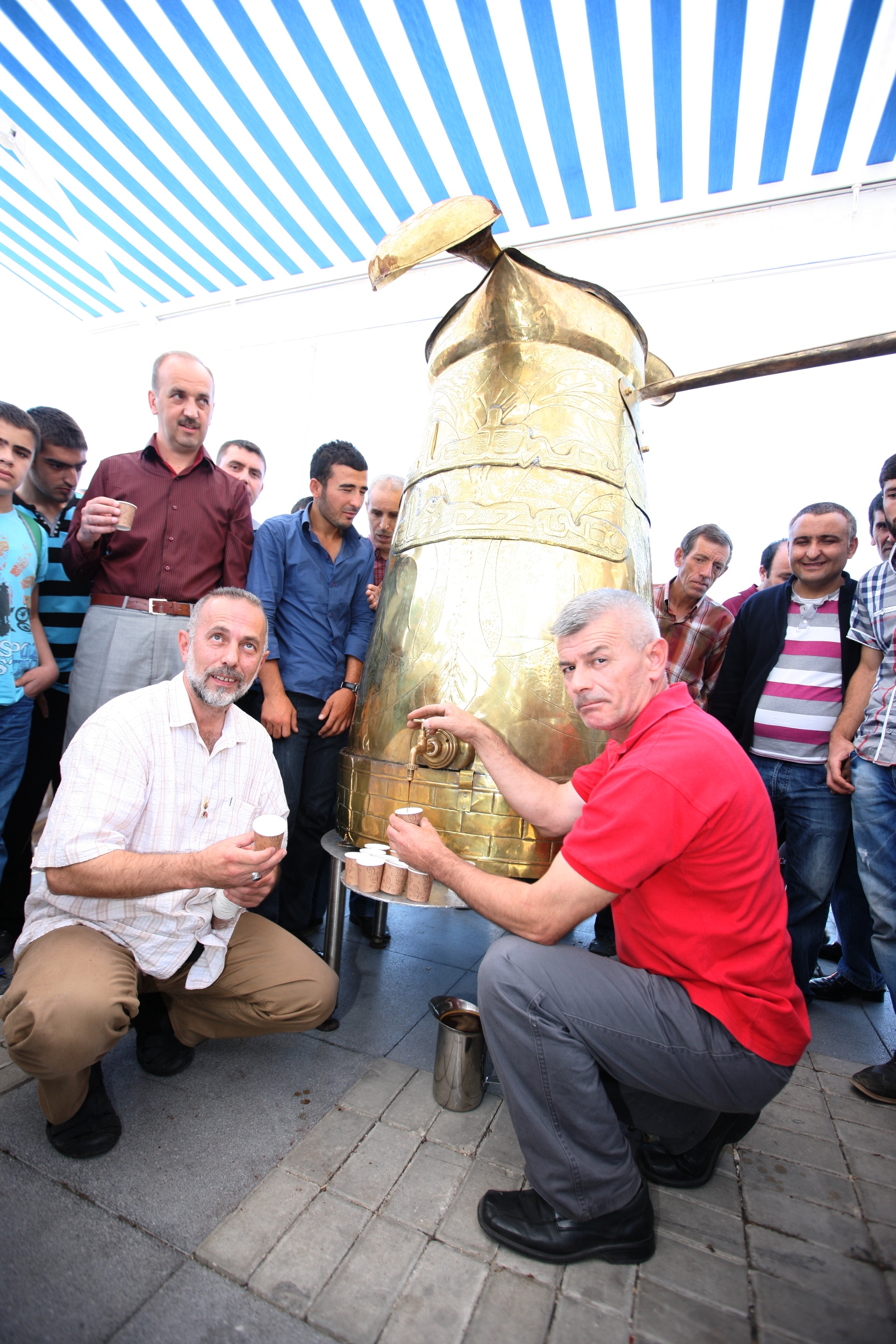 Büyükşehir Belediyesi’nin katkılarıyla Bosna Hersek’in başkenti Saray Bosna’dan Bursa’ya getirilen ve 16 bin kişilik kahve kapasitesiyle ‘Guinness Rekorlar Kitabı’na giren dünyanın en büyük kahve cezvesi, Kent Meydanı’ndaki 10 bin kişiye Osmanlı kahvesi ikramı yaptı.