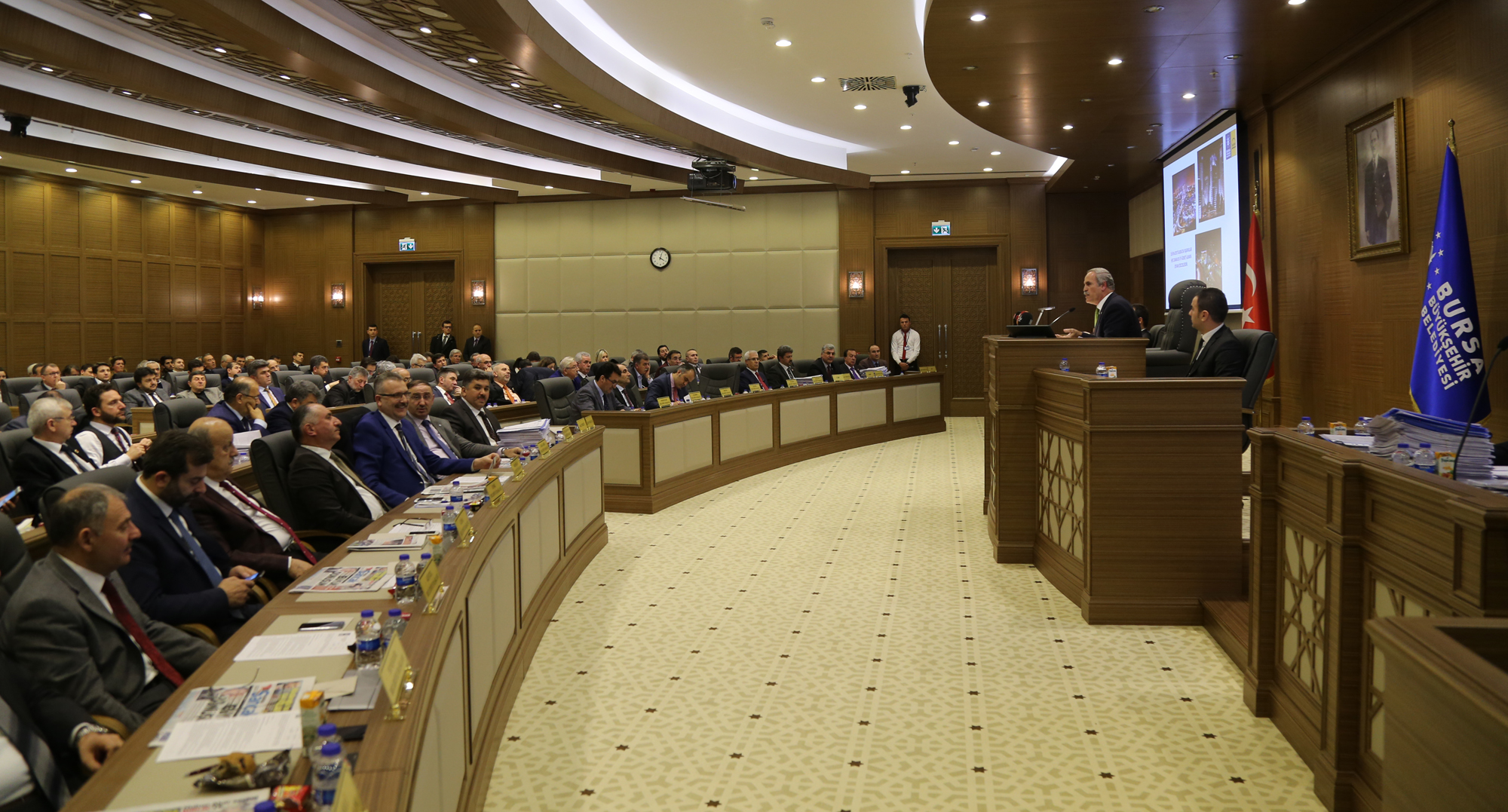Büyükşehir Belediyesi’nin Ocak ayı olağan meclis toplantısı gerçekleştirildi. Ankara Yolu Zafer Mahallesi’ndeki yeni belediye binası meclis salonunda yapılan toplantıda, Bursa’da son 1 ayda hayata geçirilen faaliyetler, önümüzdeki günlerde startı verilecek hizmetler ve kamuoyu gündemini meşgul eden konular ele alındı.