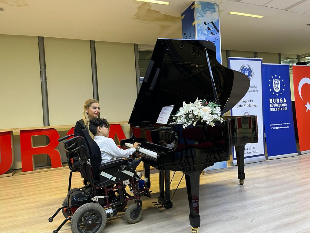 Bursa’da hizmetlerden herkesin eşit bir şekilde yararlanabilmesi adına çalışmalarını tüm kesimleri düşünerek yürüten Bursa Büyükşehir Belediyesi, Engelliler Şube Müdürlüğü aracılığıyla özel gereksinimli bireyler için yeni hizmet modelleri ve projeler geliştiriyor. Her yaş ve engel grubuna yönelik kurslar ve programlar düzenlenirken, el sanatları, seramik, resim ve müzik alanlarında verilen eğitimlerden 2020 yılından bu yana 6284 öğrenci faydalandı. Müzik eğitimine katılan 15 öğrenci, ‘Engelsiz Piyano Resitali’ adlı programda hünerlerini sergiledi. Eğitmenler eşliğinde piyano başına geçen özel öğrenciler, yetenekleriyle dinleyenlerden büyük alkış aldı.