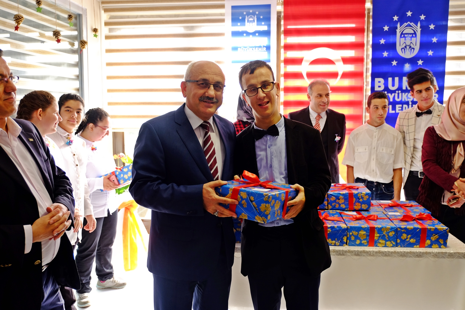 Bursa Büyükşehir Belediyesi Sanat ve Meslek Eğitim Kursları (BUSMEK), hayatlara dokunmaya devam ediyor. 3 Aralık Dünya Engelliler Günü kapsamında İnegöl Özel Eğitim Kurs Merkezindeki etkinlikte 18 özel öğrenciye çeşitli hediyeler verildi. Etkinliğe İnegöl Belediye Başkan Yardımcısı Gülhan Şahin, İnegöl İlçe Spor Müdürü Yusuf Şevki Yücel, İnegöl Milli Eğitim Şube Müdürü Orhan Çelik, İnegöl Halk Eğitim Merkezi Müdürü Burhanettin Özdemir, TFF İnegöl İlçe Temsilcisi Osman Gümüş, Özel İnegöl Ortaokulu Müdürü Ahmet Yıldız, Bursa Büyükşehir Belediyesi Sosyal İşler ve Eğitim Hizmetleri Şube Müdürü İbrahim Karaman, BUSMEK Genel Koordinatörü Eyüp Arda, İNESMEK Koordinatörü Koray Aykanat da katıldı.