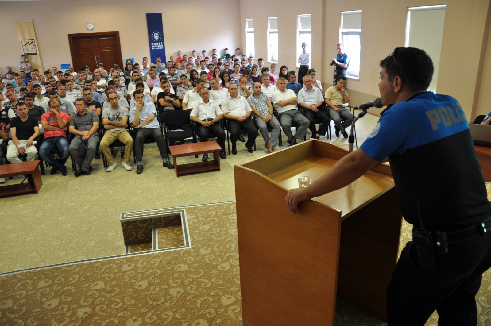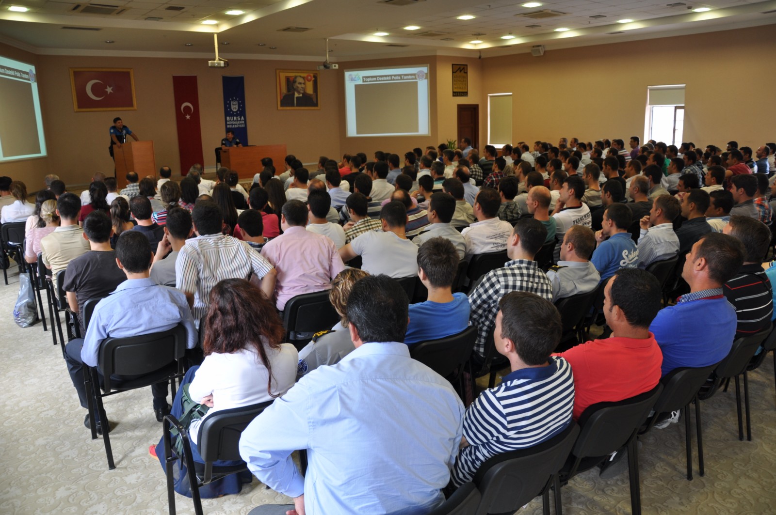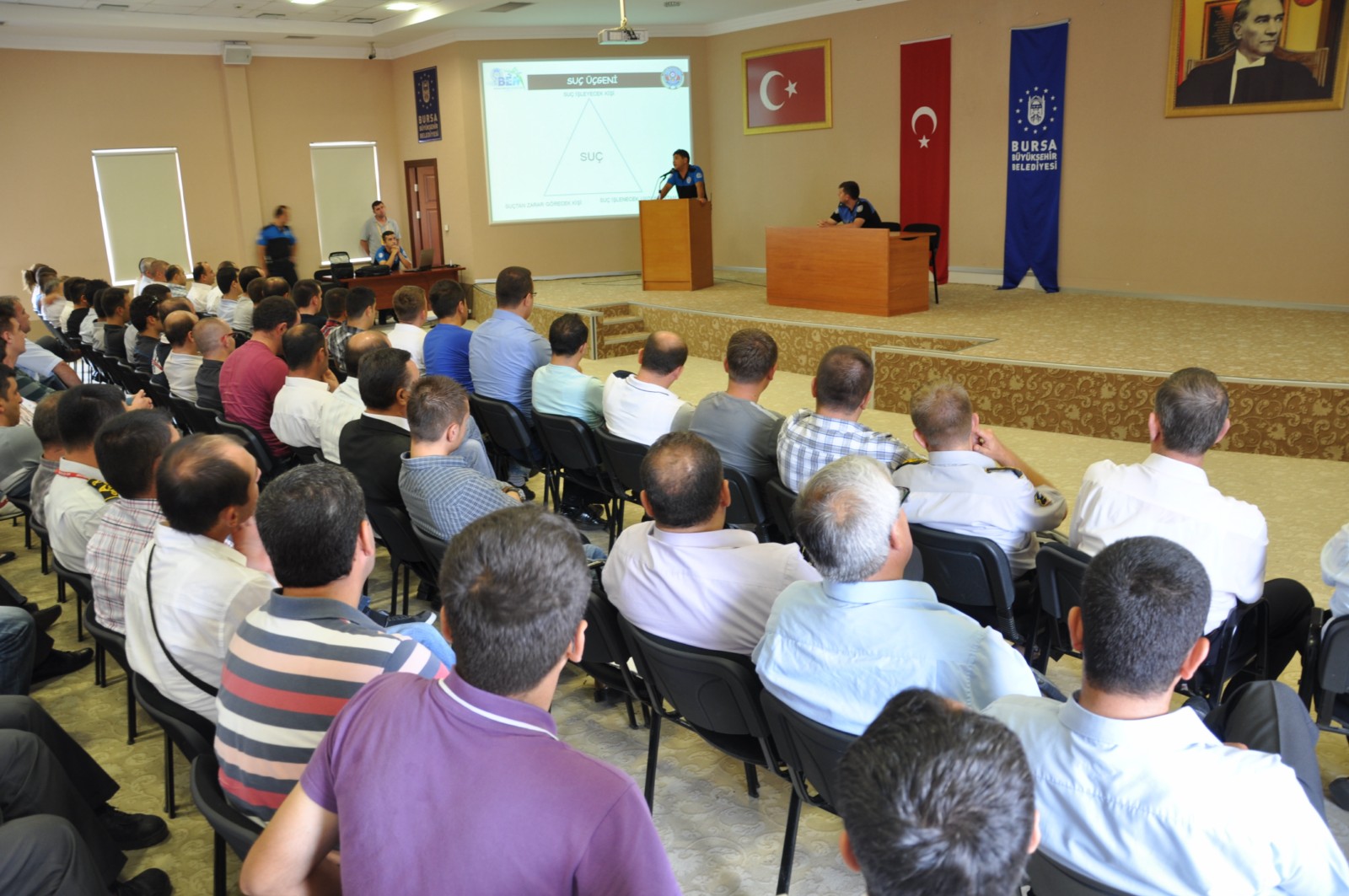 Atatürk Kongre Kültür Merkezi (Merinos AKKM) Başkanlık Salonu’nda güvenlik amirlerinin ve güvenlik personelinin katılımıyla iki gün süren eğitimlerde, Bursa Büyükşehir Belediyesi Güvenlik Şube Müdürü Ömer Sevim tarafından ‘vatandaş ilişkileri, ikna ve konuşma’ ve ‘5188 sayılı Özel Güvenlik Hizmetlerine Dair Kanun ve Uygulama Yönetmeliği’ hakkında sunum yapıldı.
