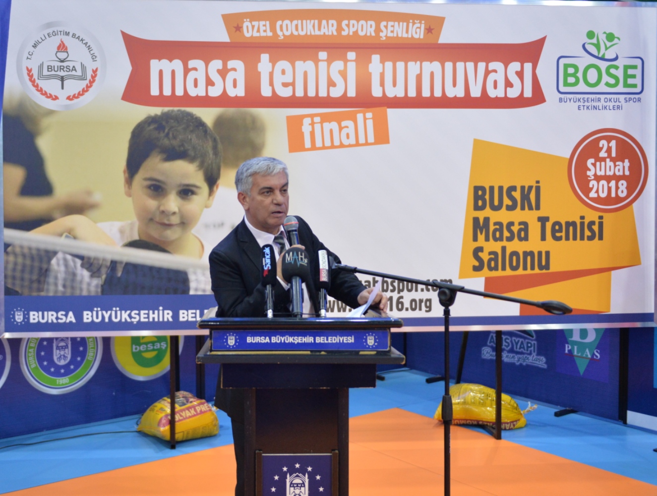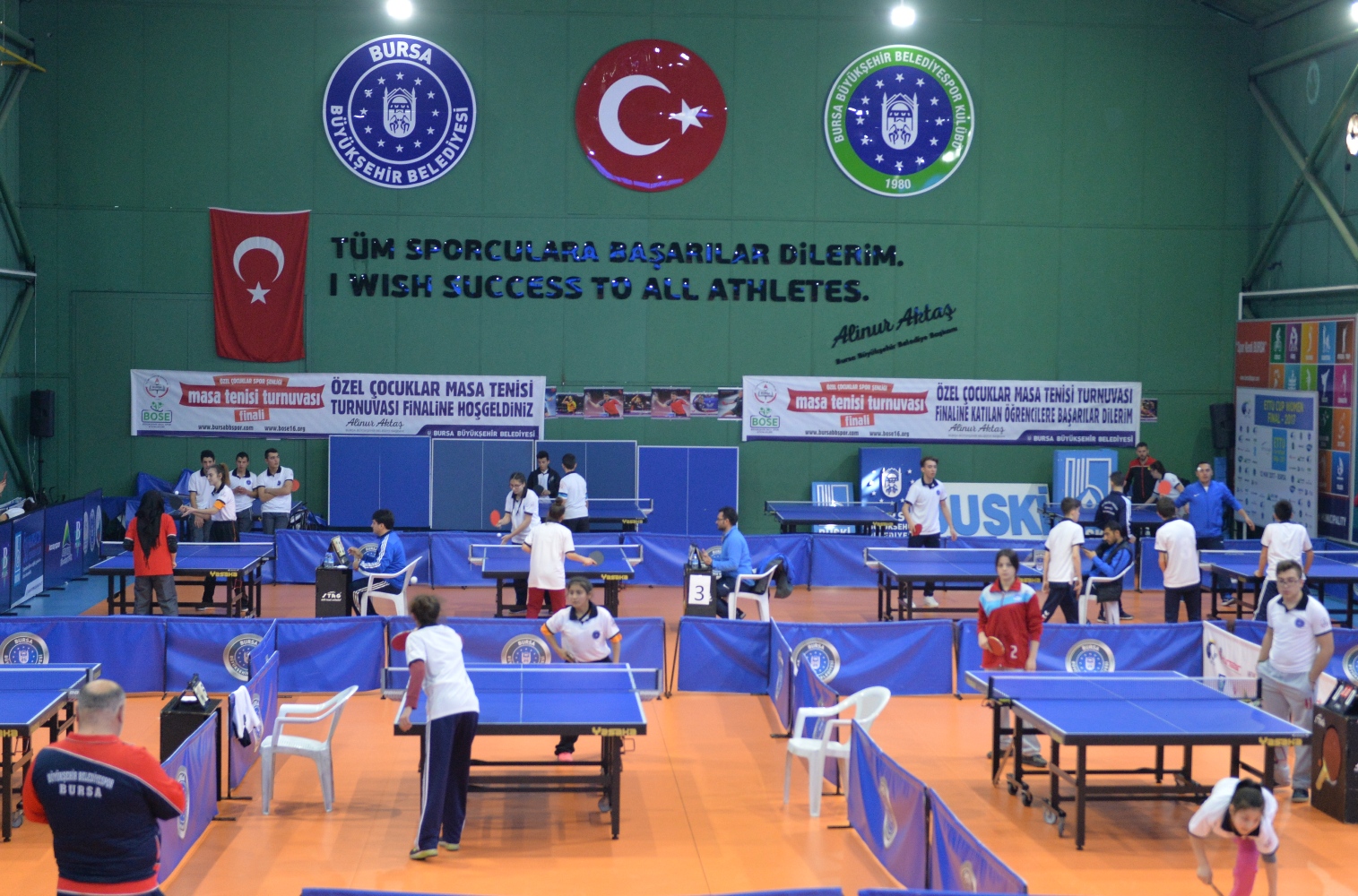 Bursa Büyükşehir Belediyesi ve İl Milli Eğitim Müdürlüğü tarafından ‘Büyükşehir Okul Sporları Etkinlikleri’ kapsamında düzenlenen ‘Özel Çocuklar Spor Şenliği Masa Tenisi Turnuvası’ görkemli bir final töreniyle son buldu. Büyükşehir Belediyesi BUSKİ Masa Tenisi Salonu’nda gerçekleşen ve Bursa’da hizmet veren 13 özel eğitim ve mesleki eğitim okullarından 60 öğrencinin katıldığı etkinlikte tüm sporcular madalya ile ödüllendirildi.