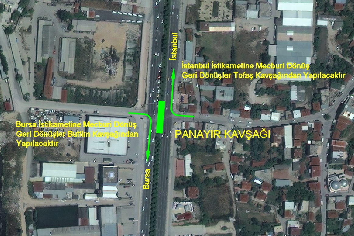 Bursa Büyükşehir Belediyesi tarafından yapım çalışmaları devam eden T2 Terminal - Kent Meydanı Tramvay hattı çalışmaları nedeniyle Panayır Sinyalize kavşağı 26 Ekim Çarşamba günü araç dönüşlerine kapatılacak ve yaya geçişleri için bas-geç sinyalizasyon sistemi kurulacak. Araçlar için alternatif dönüşler BUTTİM Köprülü Kavşağı ile TOFAŞ Sinyalize kavşağı kullanılarak yapılacak.