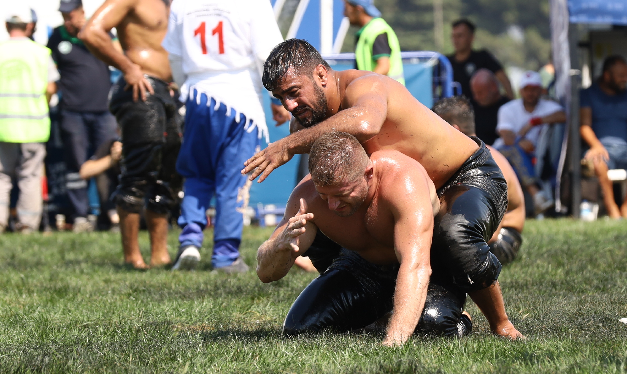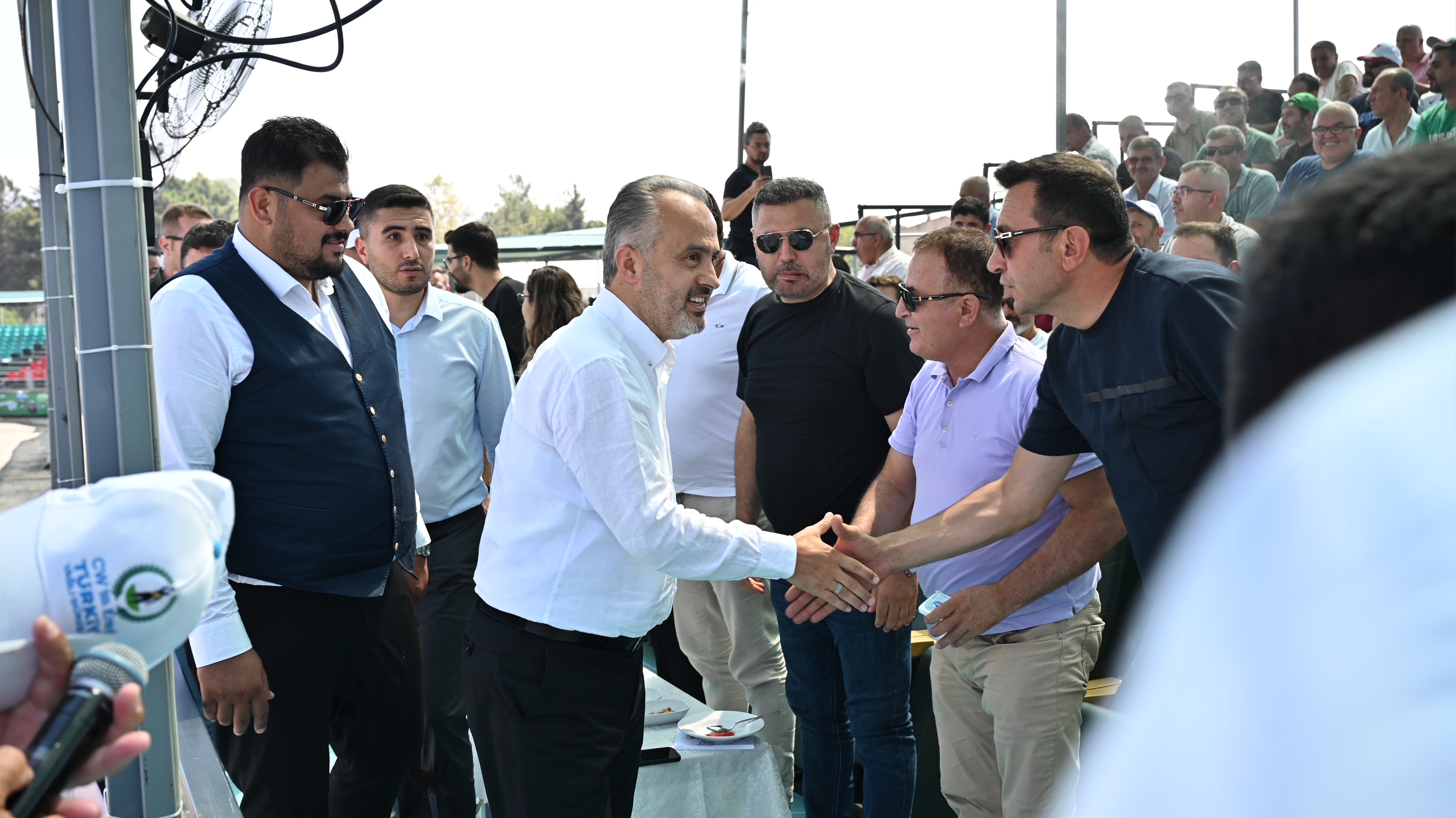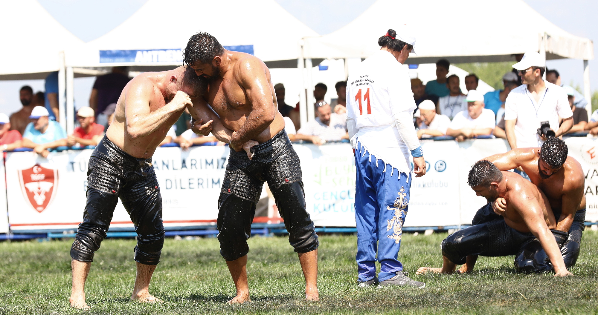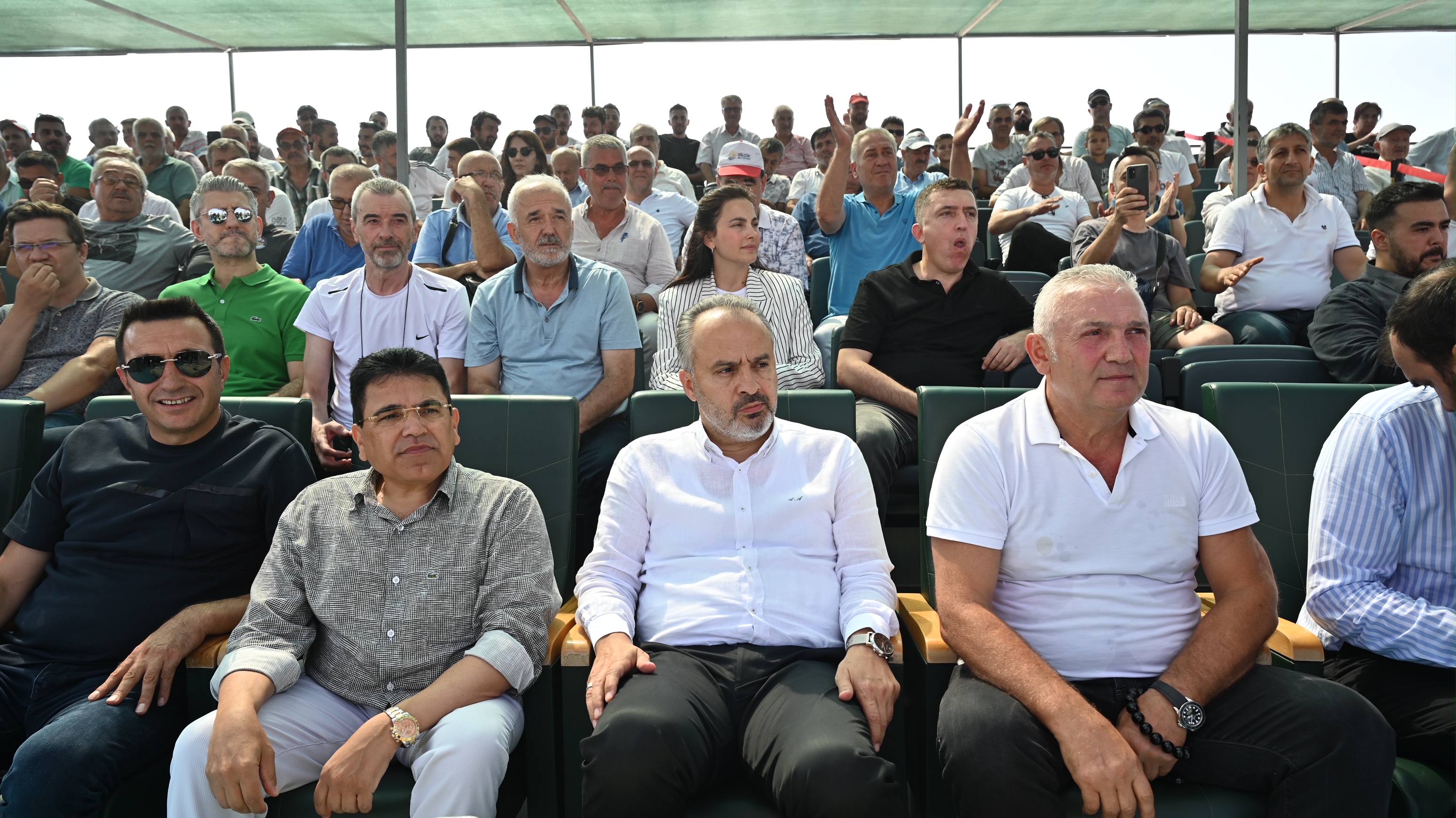 Er meydanına dönüşen Yunuseli Havaalanı’nda yapılan etkinliğe güreş severler de yoğun ilgi gösterdi. Kura çekimlerinin ardından başlayan güreşlerde, karşılaşmalarını tamamlayan güreşçiler, güneşten korunmak için ilginç yollara başvurdu. Canlı yayın kameraları için oluşturulan platformun altına giren pehlivanlar, kavurucu sıcaktan korunmaya çalıştı. İlk gün karşılaşmalarını Bursa Büyükşehir Belediye Başkanı Alinur Aktaş, Türkiye Geleneksel Güreşler Federasyonu Başkanı İbrahim Türkiş ile birlikte izledi.