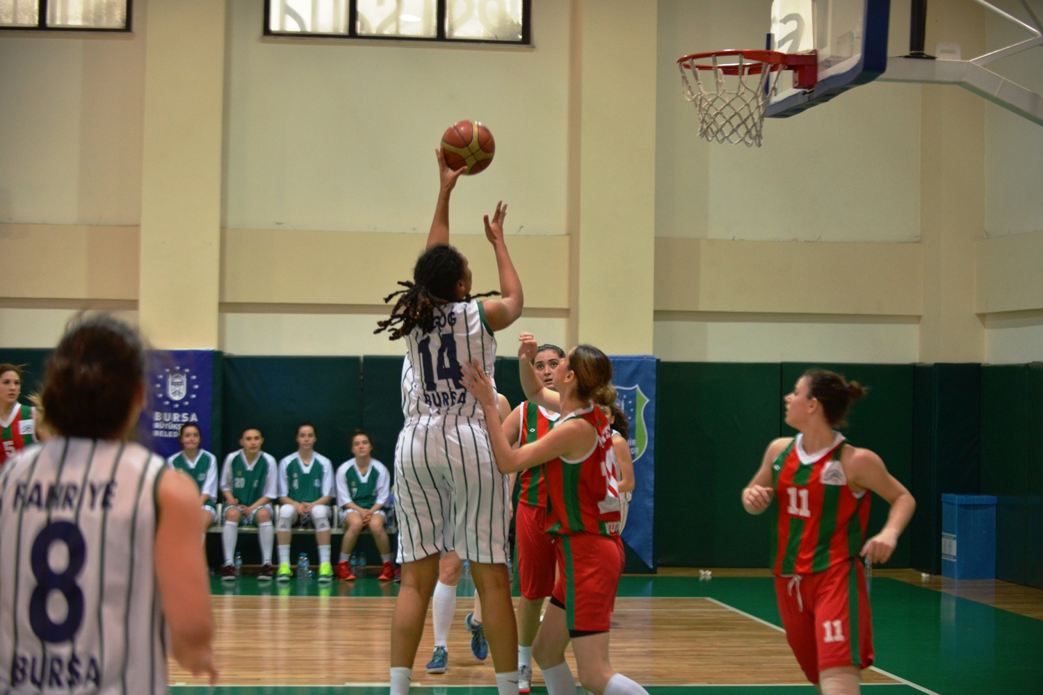 - TÜRKİYE KADINLAR BASKETBOL 2. LİGİ 2. ETAP İLK MAÇINDA BURSA BÜYÜKŞEHİR BELEDİYESPOR BAYAN BASKETBOL TAKIMI, ŞAHİN BAŞOL SPOR KOMPLEKSİ’NDE KONUK ETTİĞİ MUDANYA DİNÇSPOR’U 75-36 MAĞLUP EDEREK İLK KARŞILAŞMAYI KAYIPSIZ KAPATTI.