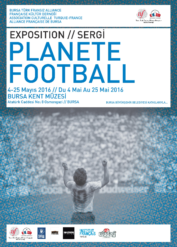 Bursa Kent Müzesi ve Bursa Türk Fransız Kültür Derneği tarafından, Magnum Fotoğraf ajansı arşivinden 1953-2000 yılları arasında çekilmiş futbol konulu fotoğraflardan derlenmiş olan ‘Planet Futbol’ sergisi, sanatseverlerin beğenisine sunuldu. Serginin açılışına Bursa Büyükşehir Belediye Başkanvekili Abdülkadir Karlık, Vali Yardımcısı Yunus Fatih Kadiroğlu, Bursa Türk Fransız Kültür Derneği Başkanı ve Fransa’nın Bursa Fahri Konsolosu Mehmet Erbak ile Ankara Fransız Kültür Merkezi Müdürü Mösyö François Xavier Adam katıldı. Bursasporlu Senegalli Futbolcu Ricardo Faty de açılışta hazır bulundu. Protokol üyeleri, 33 fotoğrafın yer aldığı sergiyi ilgiyle inceledi. Sergi, 25 Mayıs Çarşamba gününe kadar Bursa Kent Müzesi sergi salonunda izlenimde olacak. Futbolu her şekliyle kutlayan sergi, aynı zamanda izleyicilerini de yarım yüzyıl süresince dünyanın dört bir köşesine sürükleyen heyecan verici bir sosyal paylaşım olarak dikkati çekiyor.