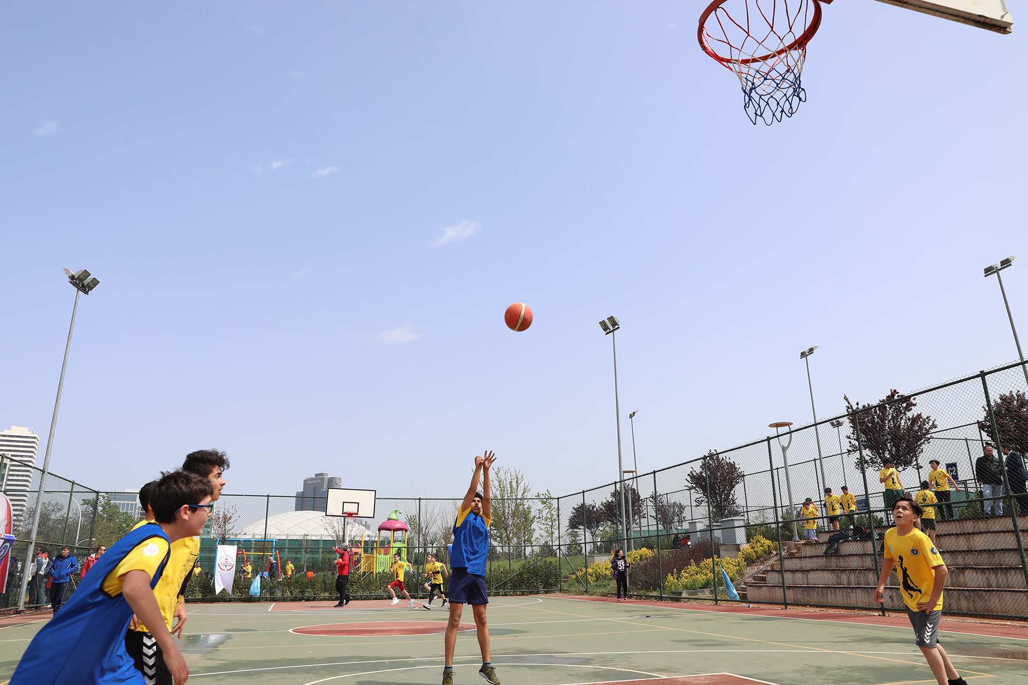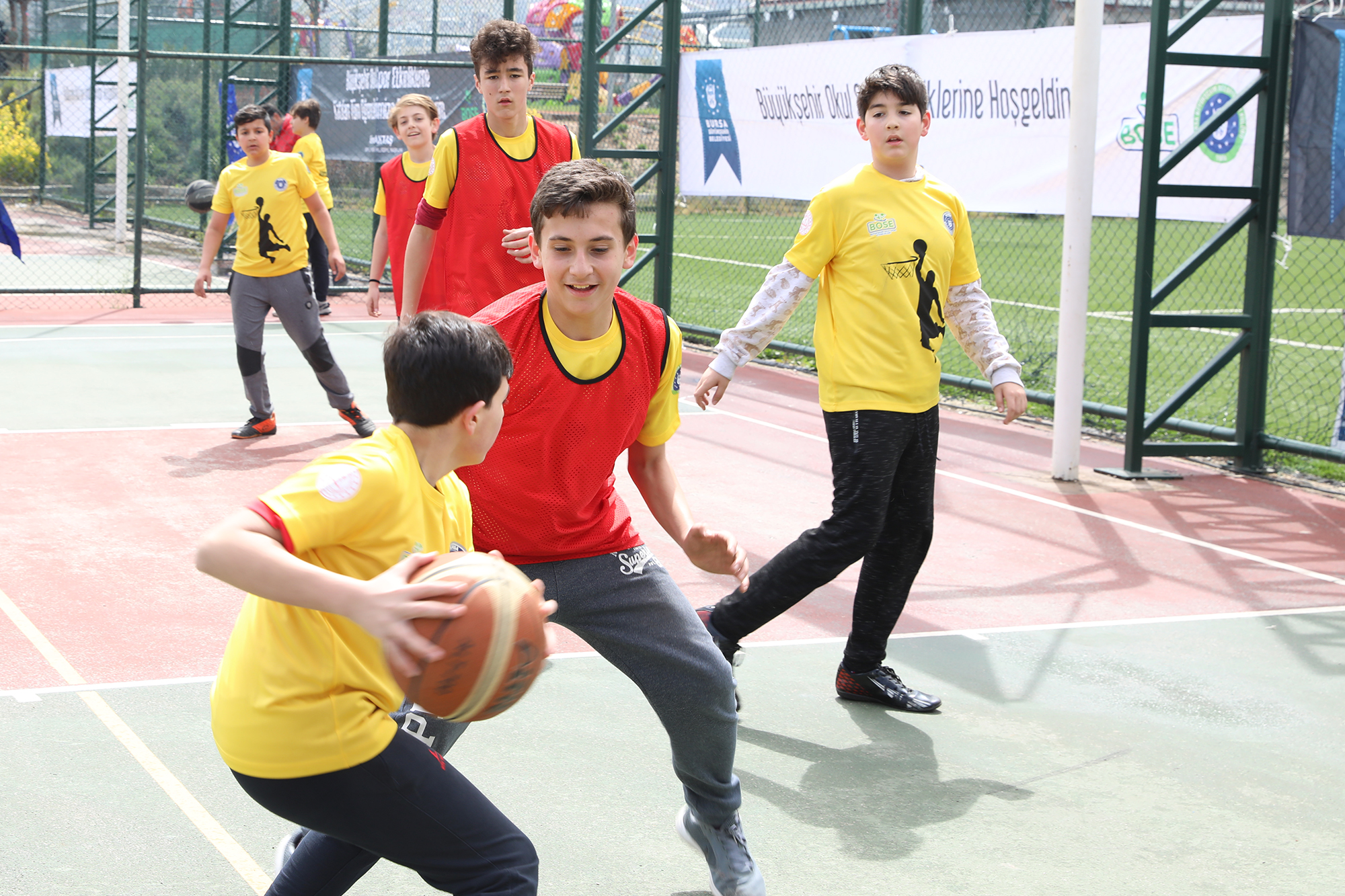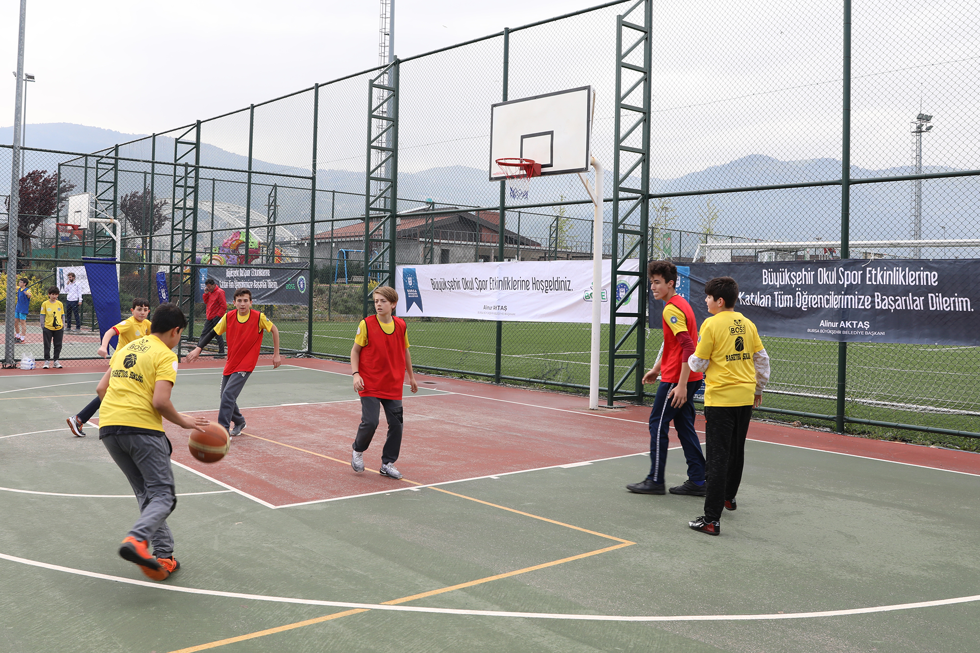 Bursa Büyükşehir Belediyesi ve il Milli Eğitim Müdürlüğü işbirliğinde yapılan Büyükşehir Okul Sporları Etkinlikleri (BOSE) kapsamında gerçekleştirilen ‘Basketbol Şenliği Hüdavendigar Kent Parkı’nda başladı. 17 ilçedeki 42 okuldan yaklaşık 400 öğrencinin katılımıyla yapılan etkinlik 26 Nisan Cuma günü son bulacak.