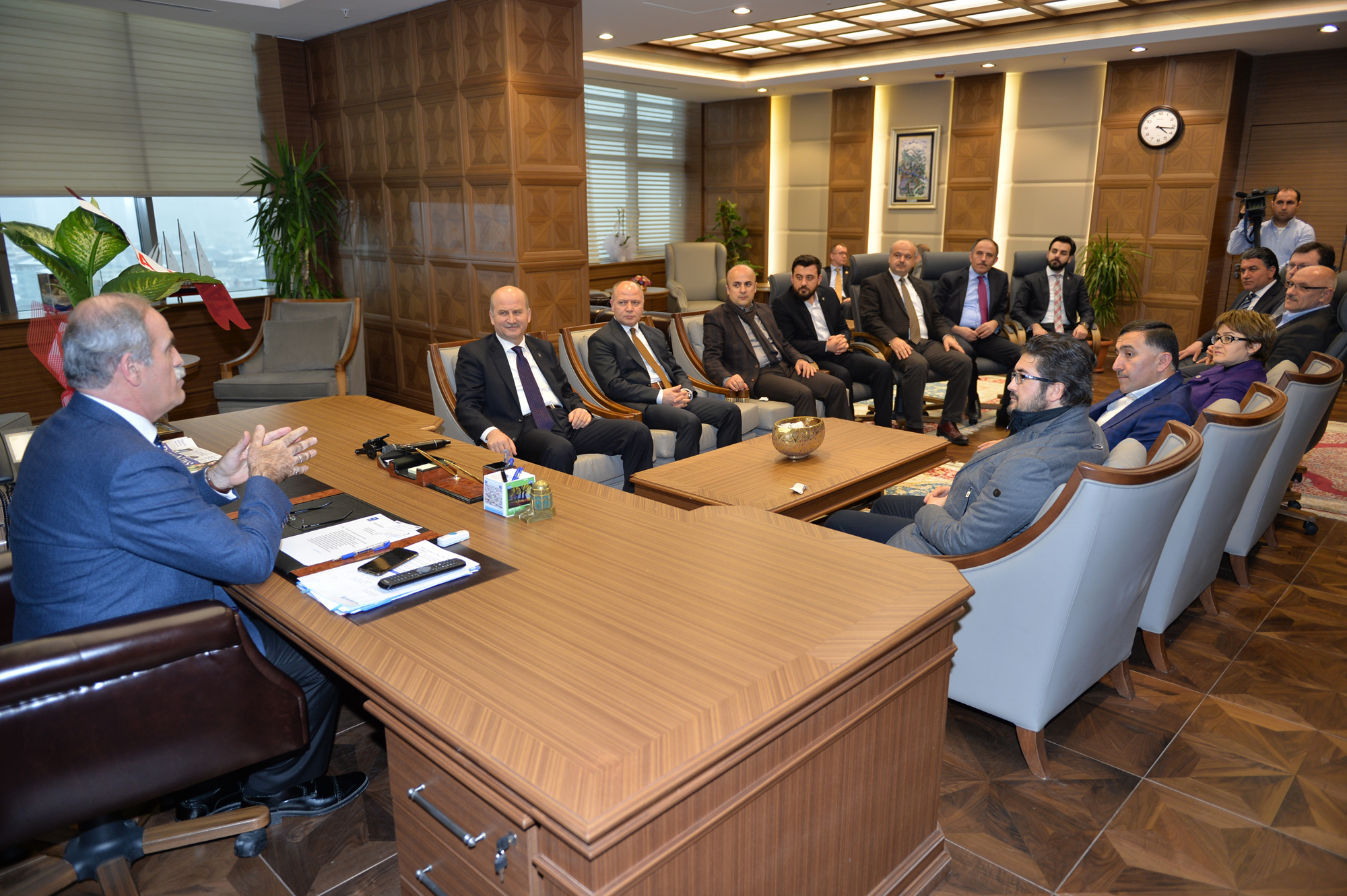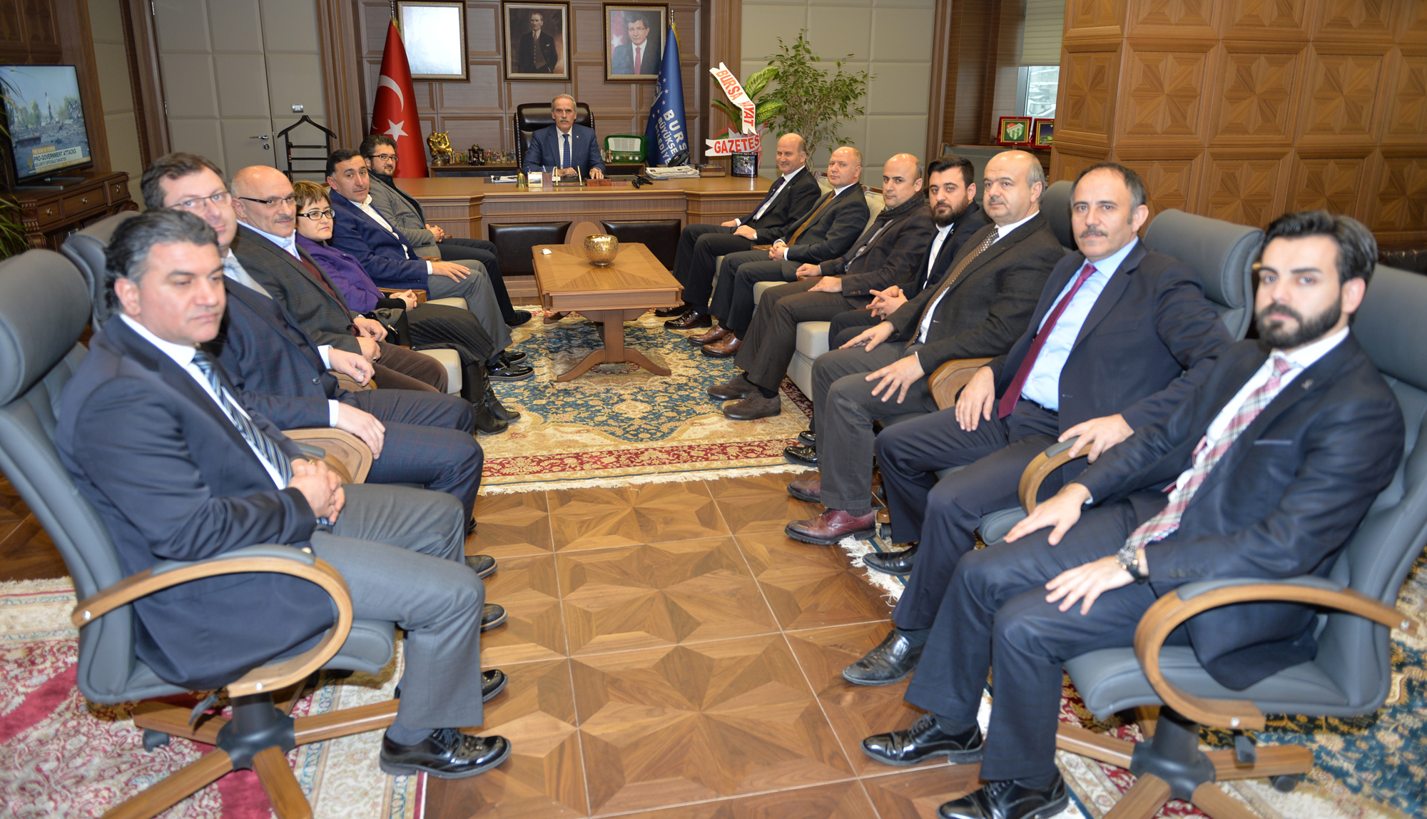 AK Parti İl Başkanı Cemalettin Torun ve yönetim kurulu üyeleri, Başkan Altepe’yi Büyükşehir Belediyesi’nin yeni hizmet binasındaki makamında ziyaret ederek “Hayırlı Olsun” dileğinde bulundu. Bursa’nın son 12 yılda yaşadığı gelişimin masaya yatırıldığı görüşmede, ana gündemi şehirde faaliyete alınan prestij yapılar oluşturdu. Başkan Altepe’nin dünü ve bugünüyle kentin biyografisini çektiği görüşmede, AK Parti heyeti anlatılanları büyük bir dikkatle dinledi.