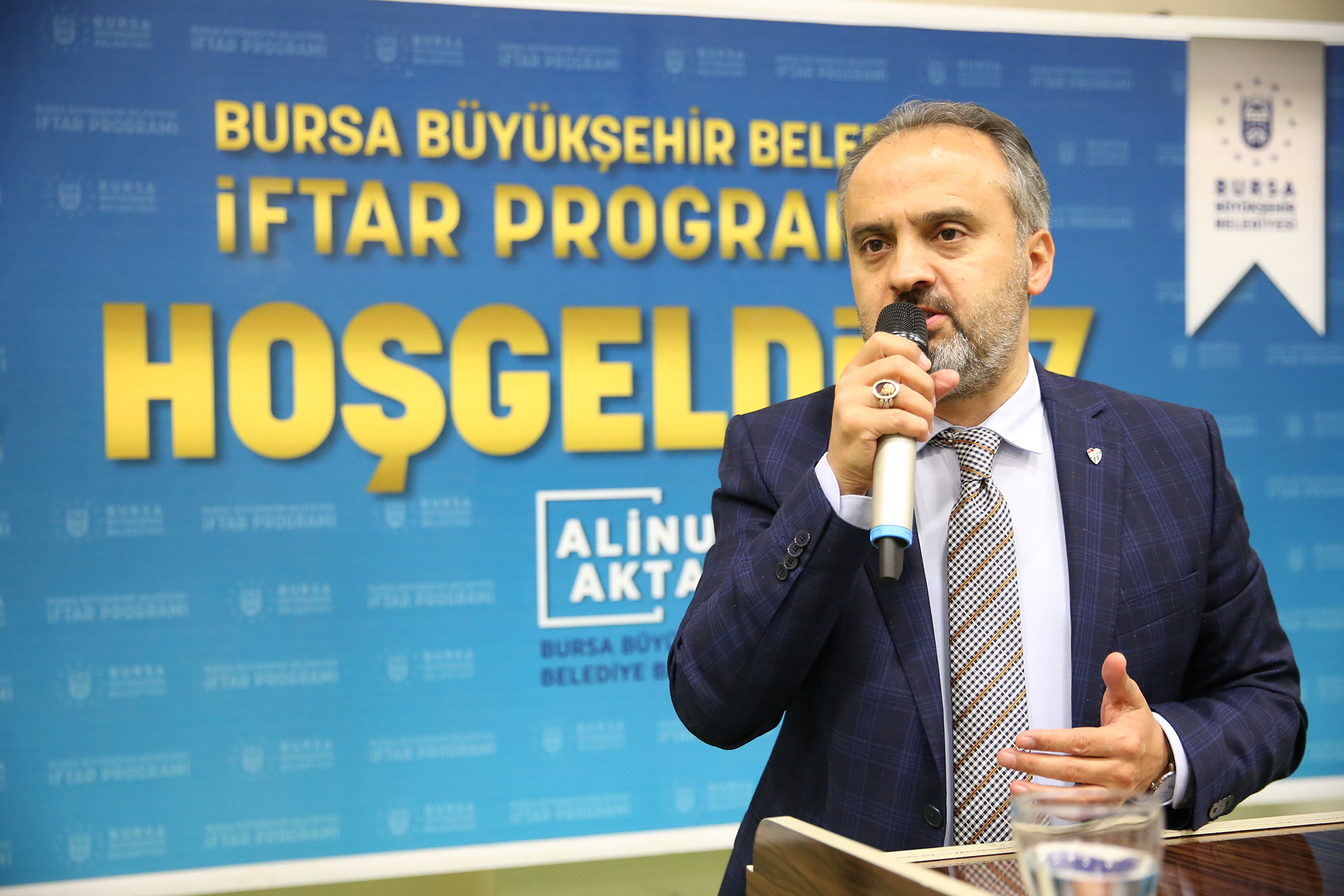 İftar yemeğinin ardından vatandaşlara seslenen Büyükşehir Belediye Başkanı Alinur Aktaş, Büyükşehir Belediyesi olarak Bursa'da her akşam 16 bin 500 kişiye iftar verdiklerini bunun yanında iftar programlarının 6 ülkede de yapıldığını hatırlattı. Kendisinin de Yunanistan ve Makedonya'da yapılan iftar programlarına katıldığını ifade eden Başkan Aktaş, "Oralarda gördüğüm manzara karşısında diyorum ki; Allah'a hamdolsun iyi ki Türkiye'de yaşıyoruz. İyi ki Recep Tayyip Erdoğan gibi bir Cumhurbaşkanımız var. İyi ki 82 milyonluk nüfusumuzla hür ve bağımsız olarak yolumuza devam ediyoruz. Şükretmek kıymetini bilmek lazım. Ama bu birliği ve beraberliği de devam ettirmek lazım. En büyük zenginliğimiz bu. Allah birliğimizi ve beraberliğimizi bozmasın. Allah bu toplumu fitne ve fesada düşürmek isteyenlere fırsat vermesin" dedi.