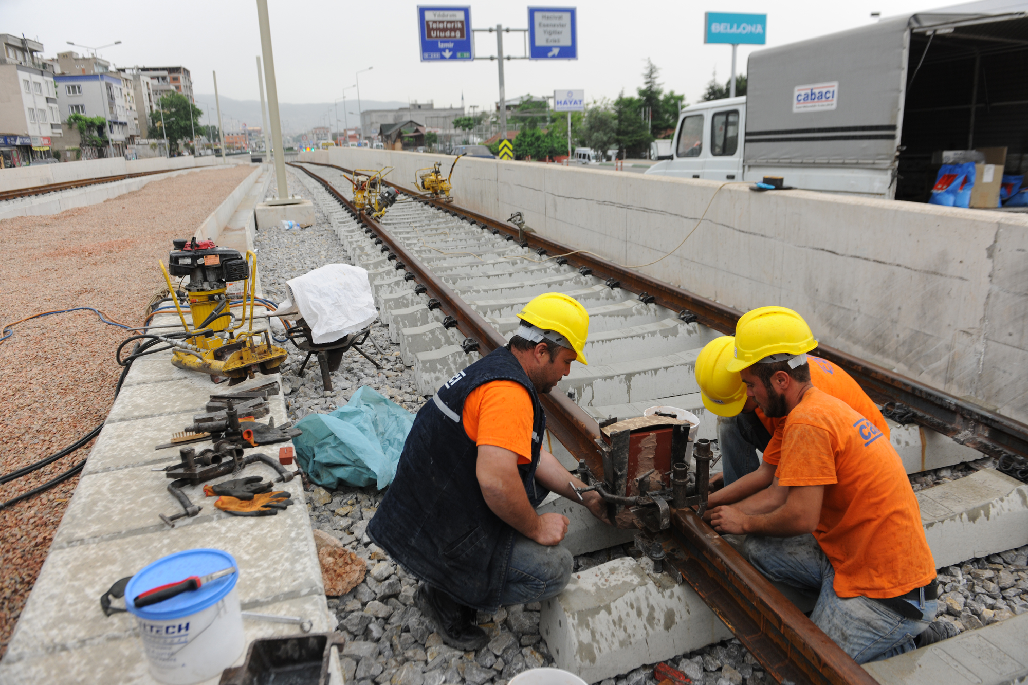 BURSA – Bursa Büyükşehir belediyesi tarafından kesintisiz ve konforlu ulaşımı kentin doğusuyla buluşturmak amacıyla projelendirilen Bursaray Kestel Hattı’nda inşaatın önemli bir kısmı tamamlanırken, ray döşeme çalışmalarına başlandı. Şirinevler İstasyonu’nda devam eden ray bağlantı çalışmalarını yerinde inceleyen Başkan Altepe, istasyonda binalarının ince işçiliklerin devam ettiğini belirterek, bu yıl içinde Kestel’e kadar hattın tamamlanmasını hedeflediklerini söyledi.