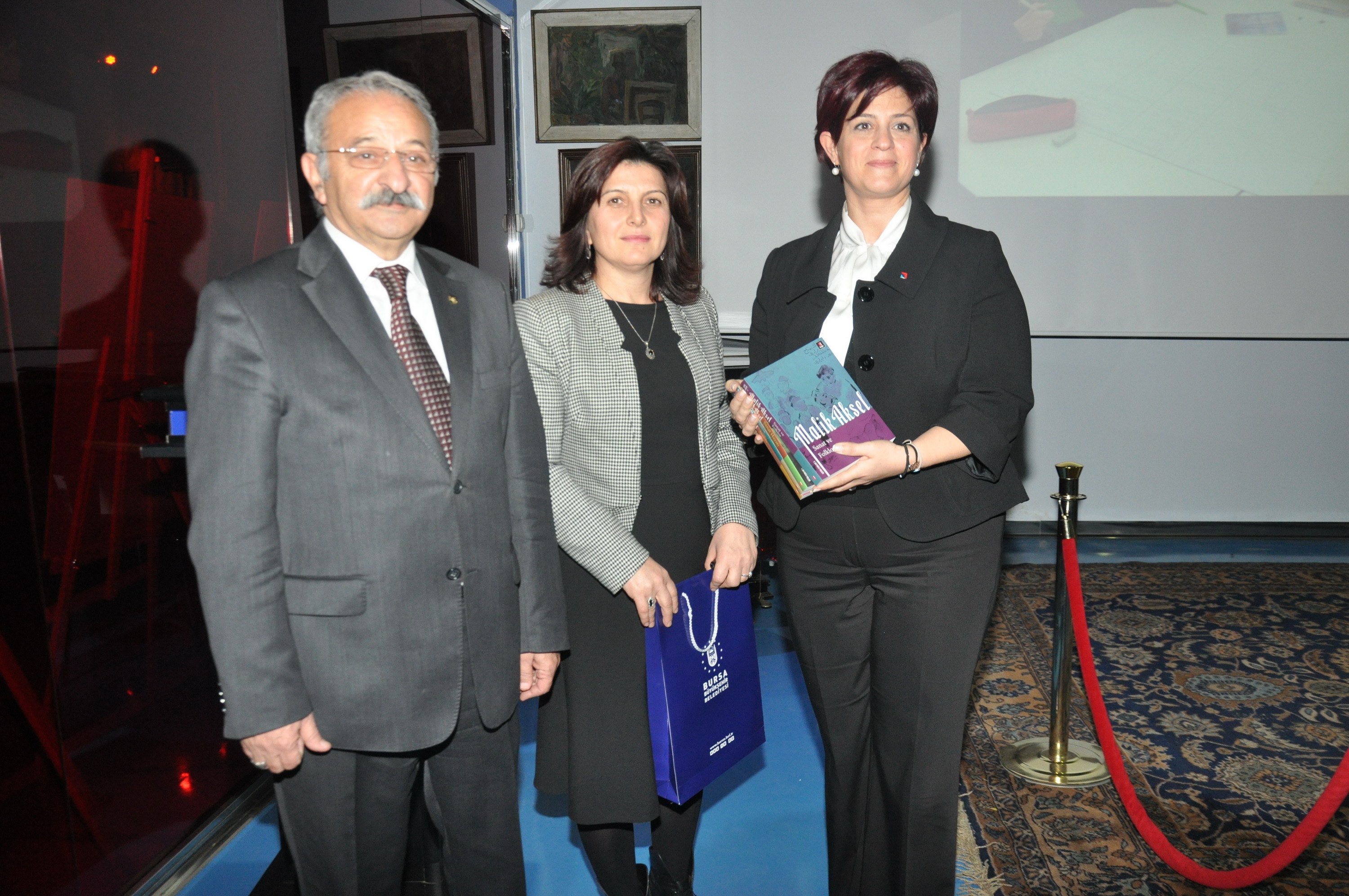 Konuşmaların ardından Muhterem Çevik ve Ahmet Erdönmez tarafından Ayça Tayar’a, Ressam Malik Aksel’i anlatan bir kitap seti hediye edildi.