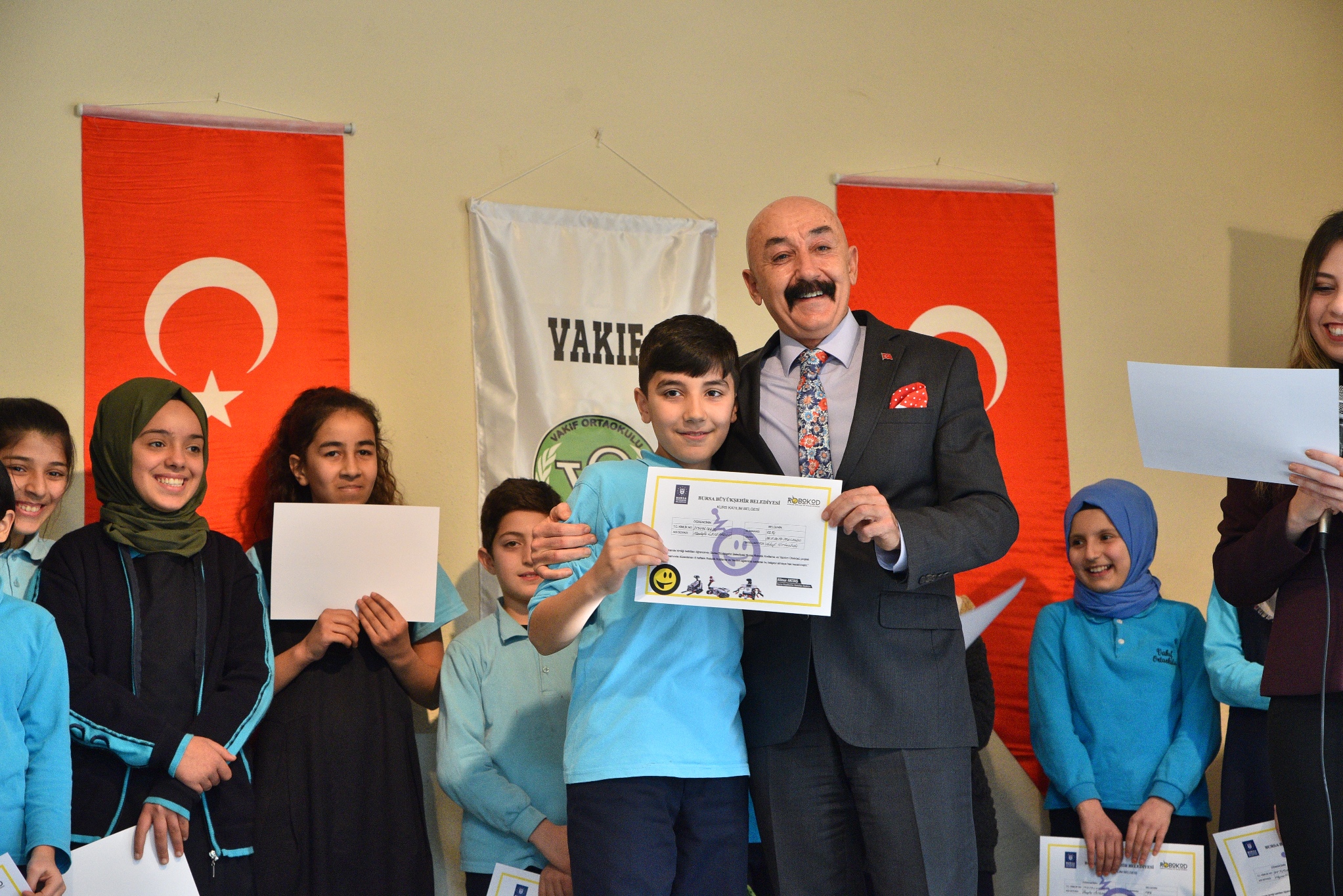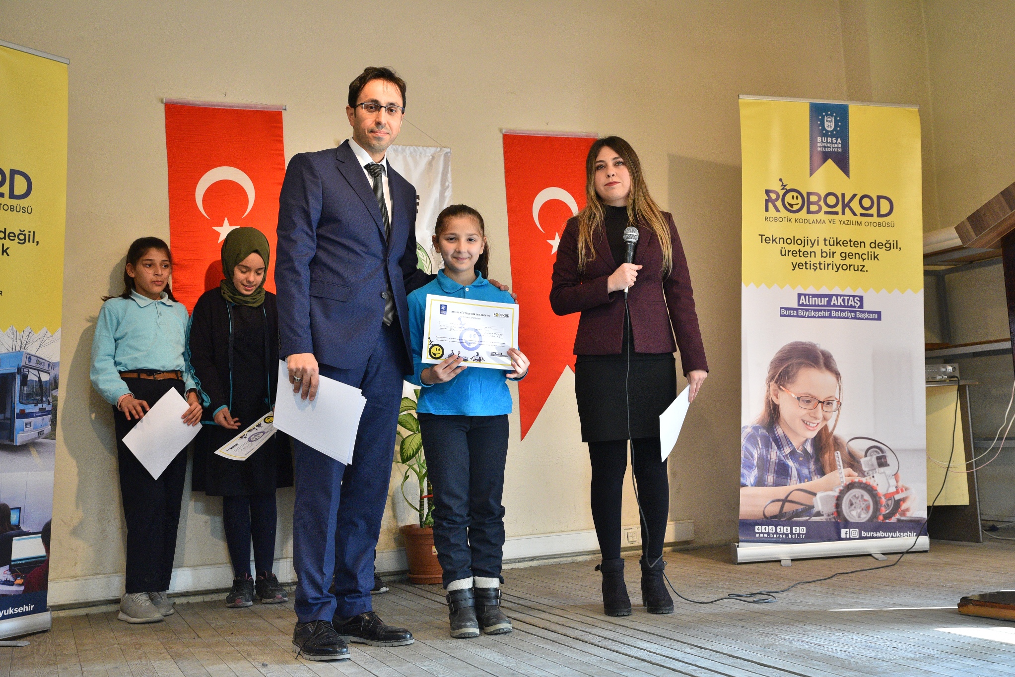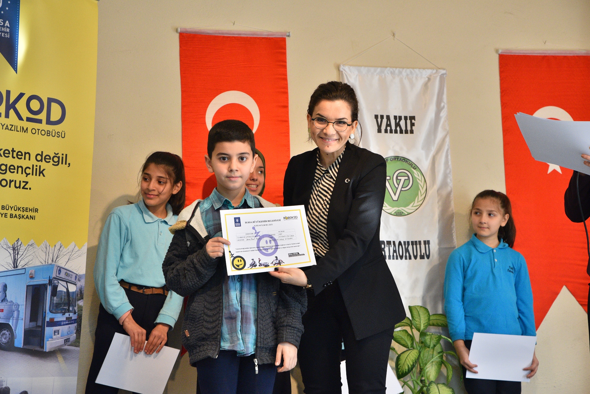BURSA - Bursa Büyükşehir Belediyesi’nin çocukların bilim ve teknolojiyi sevmeleri hedefiyle başlattığı projesi ‘Robokod Robotik Kodlama ve Yazılım Otobüsünde Vakıf Ortaokulu ve Meliha Cemal Bağcı Ortaokulunda toplam 205 öğrenciye eğitim verildi.