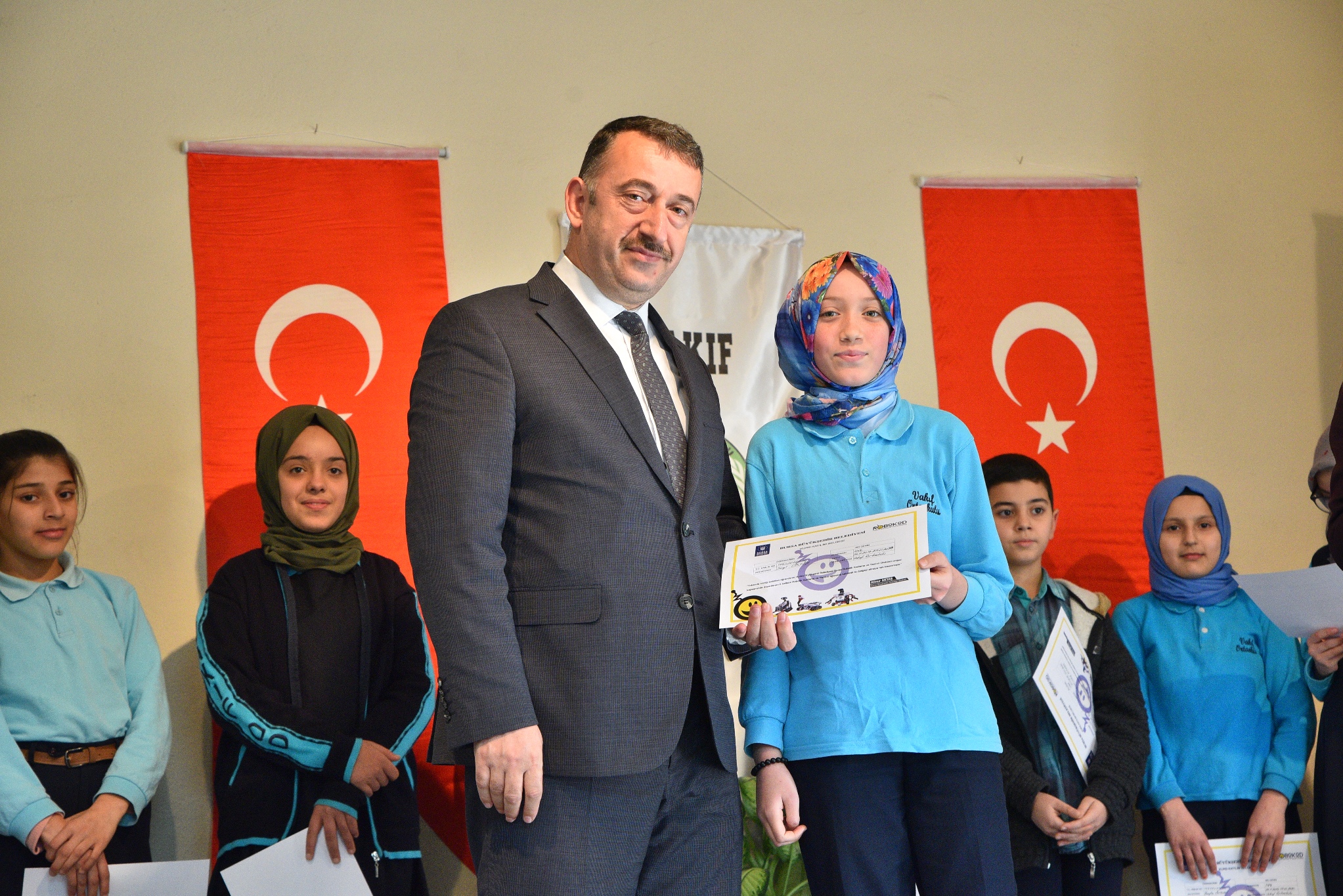 Konuşmaların ardından öğrencilere katılım belgeleri dağıtıldı.