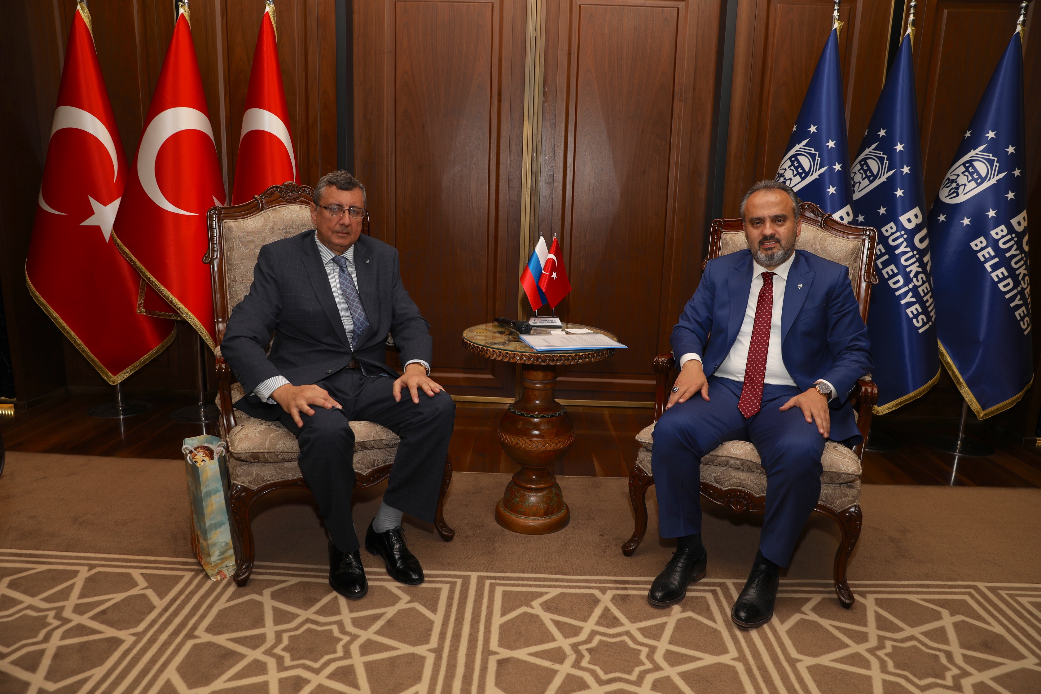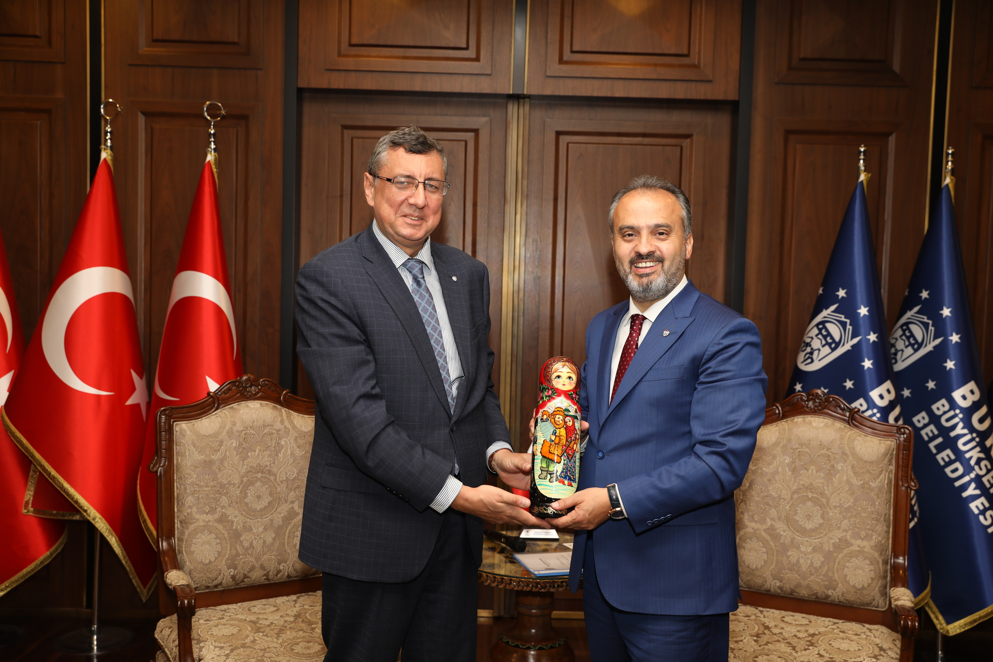 BURSA - Bu yıl 9’uncu kez düzenlenen Bursa Fotoğraf Festivali’nin konuk ülkesi olan Rusya’nın İstanbul Başkonsolosu Andrey Buravov, festival öncesi Bursa Büyükşehir Belediye Başkanı Alinur Aktaş’ı ziyaret etti.