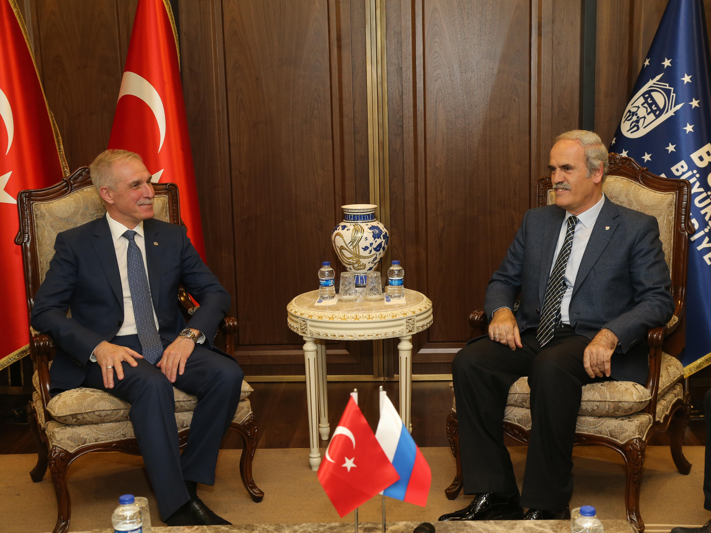 Bursa Büyükşehir Belediye Başkanı Recep Altepe, Rusya Ulyanovsk Bölgesi Valisi Sergey Morozov ve beraberindeki heyet ile Büyükşehir Belediyesi Yeni Hizmet Binası’nda bir araya geldi.