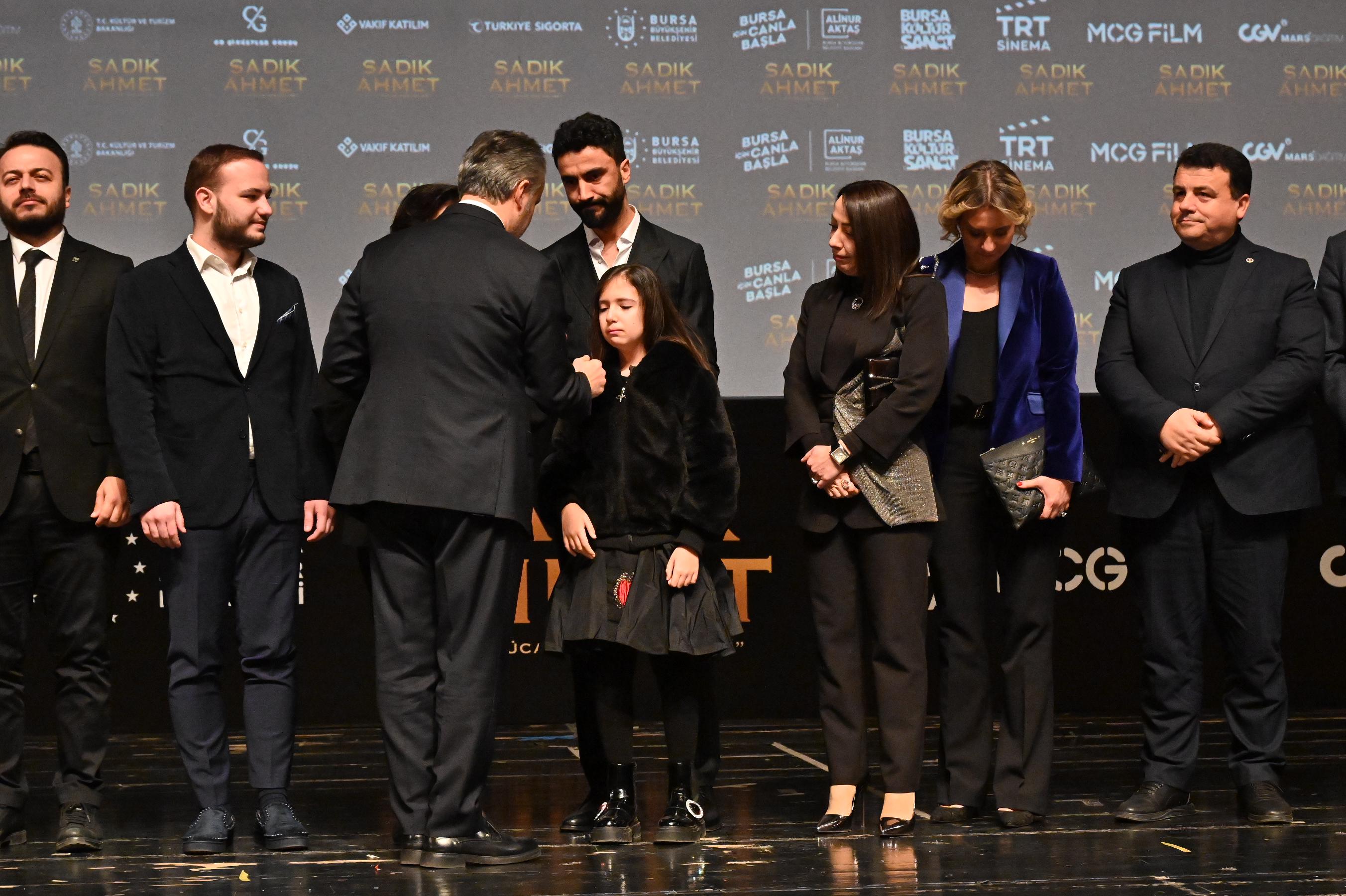 Film gösterimi öncesinde konuşan Büyükşehir Belediye Başkanı Alinur Aktaş, Dr. Sadık Ahmet’i ‘Sadece Türk olduğum için hapse gönderiliyorum. Eğer Türk olmak suçsa şunu tekrarlıyorum, Türk’üm ve hep öyle kalacağım’ sözleriyle andı. Onu, 48 yıllık hayatına birçok kahramanlık hikâyesi sığdırmış efsanevi bir isim olarak tanıdıklarını söyleyen Başkan Aktaş, geçmiş zamanda Dr. Sadık Ahmet’e kabri başında dua etmenin kendisine de nasip olduğunu belirtti. Batı Trakya’daki Türklere ‘Türk’ dediği için hayatı altüst olan, hapse atılarak türlü işkenceler gören, ailesinden ve sevdiklerinden ayrı bırakılan bir isim olarak bildiklerini ifade eden Başkan Aktaş, tüm bu zorluklara rağmen Yunanistan’ın Türklere uyguladığı ‘inkârcı’ politikayı ve zorbalığı kabul etmeyen Sadık Ahmet’in hayatını davasına adayarak Batı Trakya Türklerinin gür ve hür sesi olduğunu dile getirdi. Onların çektiği sıkıntıları, Yunanistan’ın sınırlarını aşarak tüm dünyaya duyurmaya gayret ettiğini anlatan Başkan Aktaş, “Merhum Sadık Ahmet, bir doktor olarak pek çok insanın fiziki yaralarını iyileştirdiği gibi, kitlesel yaraları iyileştirmek için de var gücüyle çabalayarak büyük bir kahramanlık örneği gösterdi. ‘Sadık Ahmet’ filminin galası için bir araya geldiğimiz bu anlamlı gün; onun aziz hatırasını yâd etmek ve kendisine minnettarlığımızı sunmak için önemli bir fırsat. Ruhu şad, mekanı cennet olsun. Bu gibi eserlerin özellikle genç nesillerde tarih bilincini oluşturması bakımından son derece önemli olduğunu düşünüyorum. Özellikle Bursa’ya Batı Trakya’dan göç ederek gelip hayatını sürdüren birçok insanımız var. Bosna, Kosova, Makedonya ve diğer yerler bizim için önemli ama Batı Trakya bizim bir parçamızdır. Batı Trakya’daki kardeşlerimizle her zaman gönül birliğimiz var. Filmimiz hayırlı olsun” dedi.