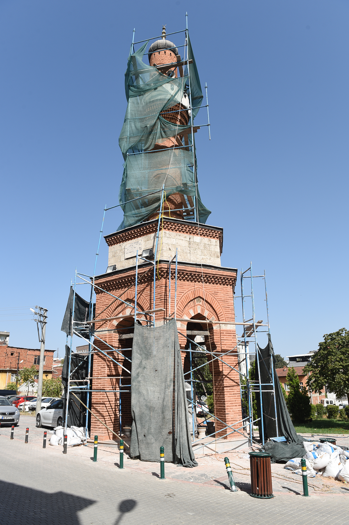 - BURSA’DA YILDIRIM BEYAZIT DÖNEMİNDE 1390 YILINDA KARA TİMURTAŞ PAŞA VEYA OĞLU ALİ BEY TARAFINDAN YAPTIRILDIĞI SANILAN TİMURTAŞ PAŞA CAMİİ’NDEN BAĞIMSIZ AYRI OLARAK YAPTIRILAN ALTI ŞADIRVAN ÜSTÜ MİNARE, BÜYÜKŞEHİR BELEDİYESİ TARAFINDAN RESTORE EDİLİYOR.