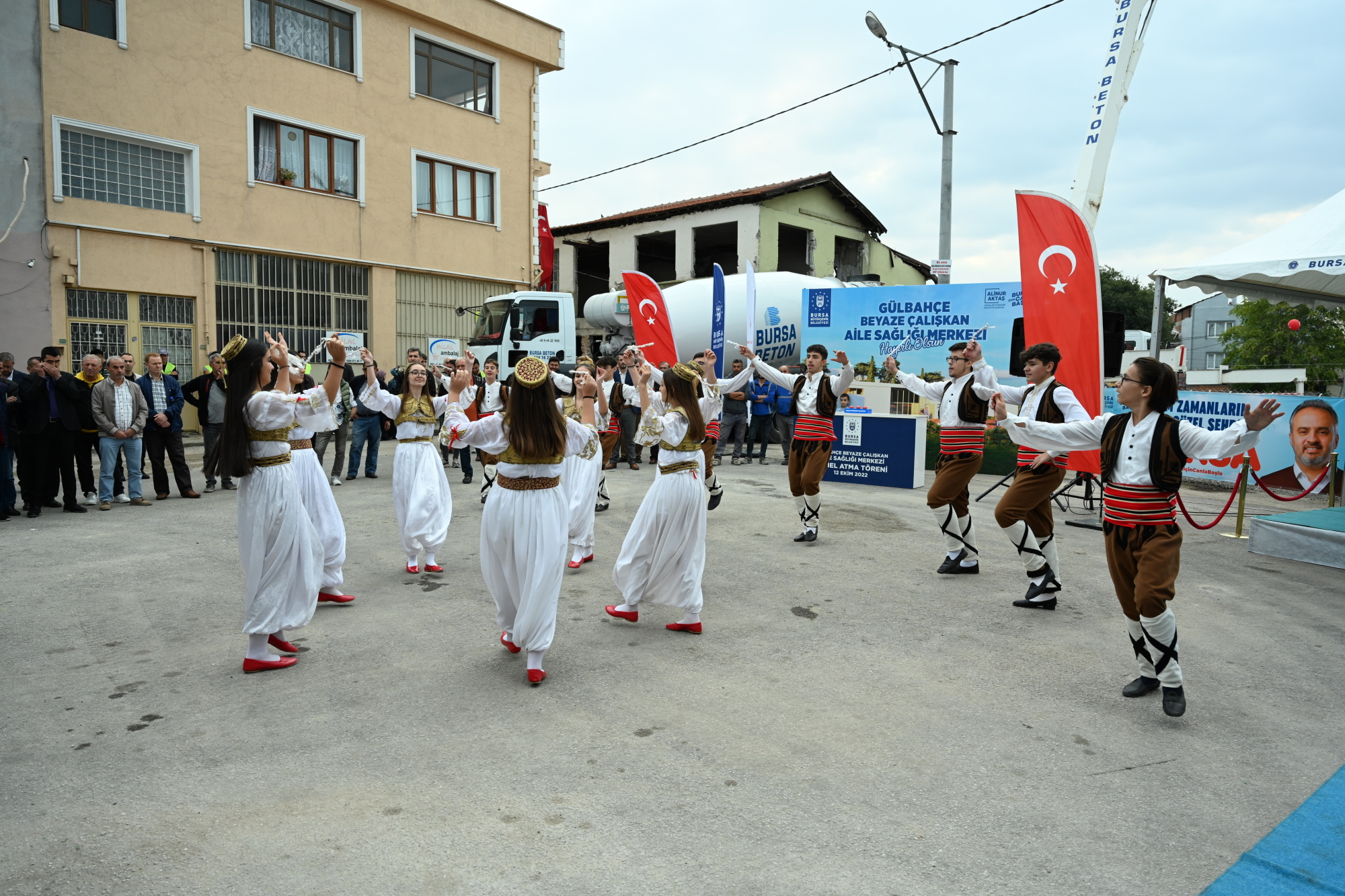 Rumeli Halk Dansları ekibinin gösterileriyle renklenen törende; konuşmaların ardından Başkan Aktaş, Çalışkan ailesi ve protokol üyeleri ile birlikte butona basarak, Gülbahçe Beyaze Çalışkan Aile Sağlığı Merkezi ile 112 Acil Müdahale İstasyonu’nun temelini attı.