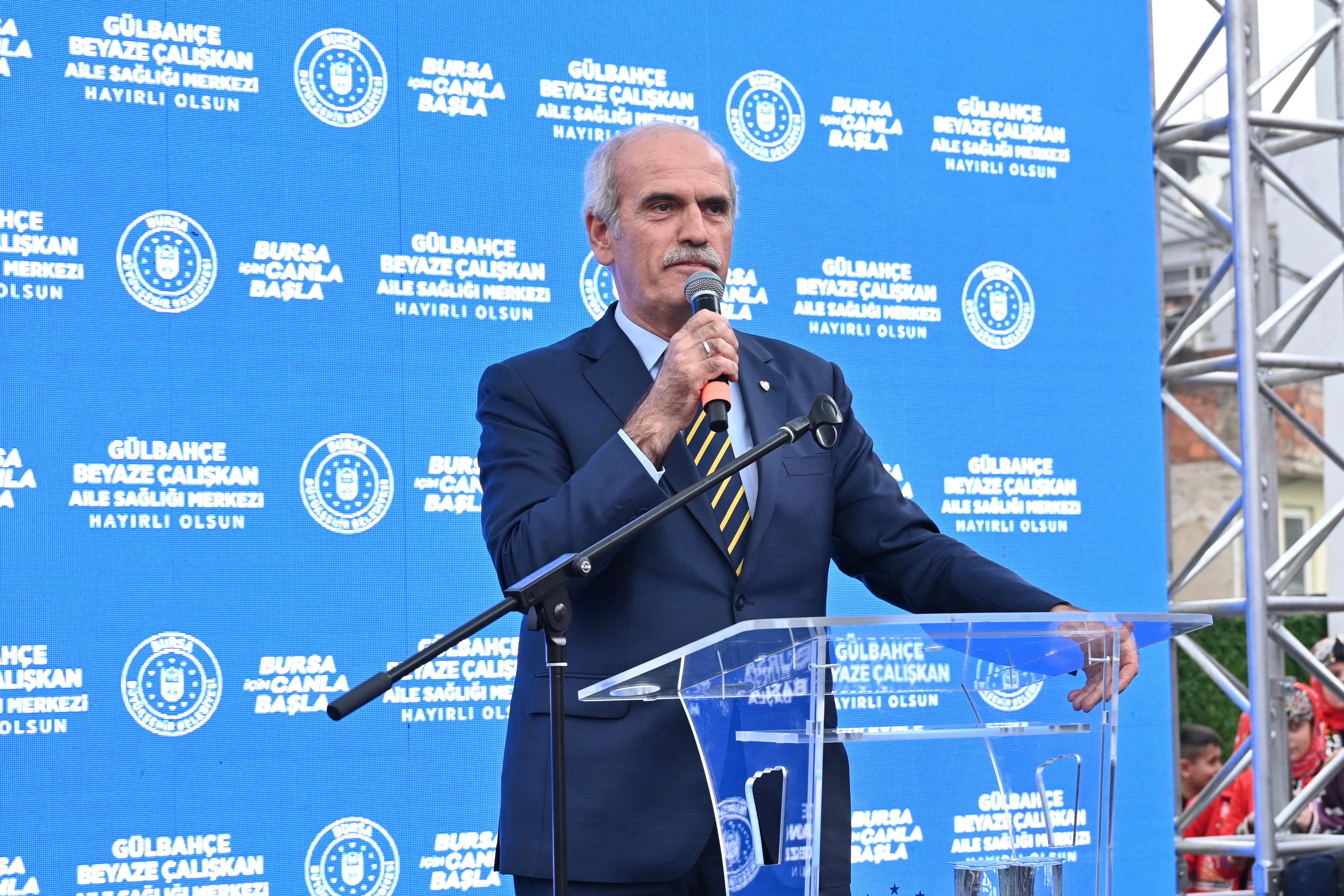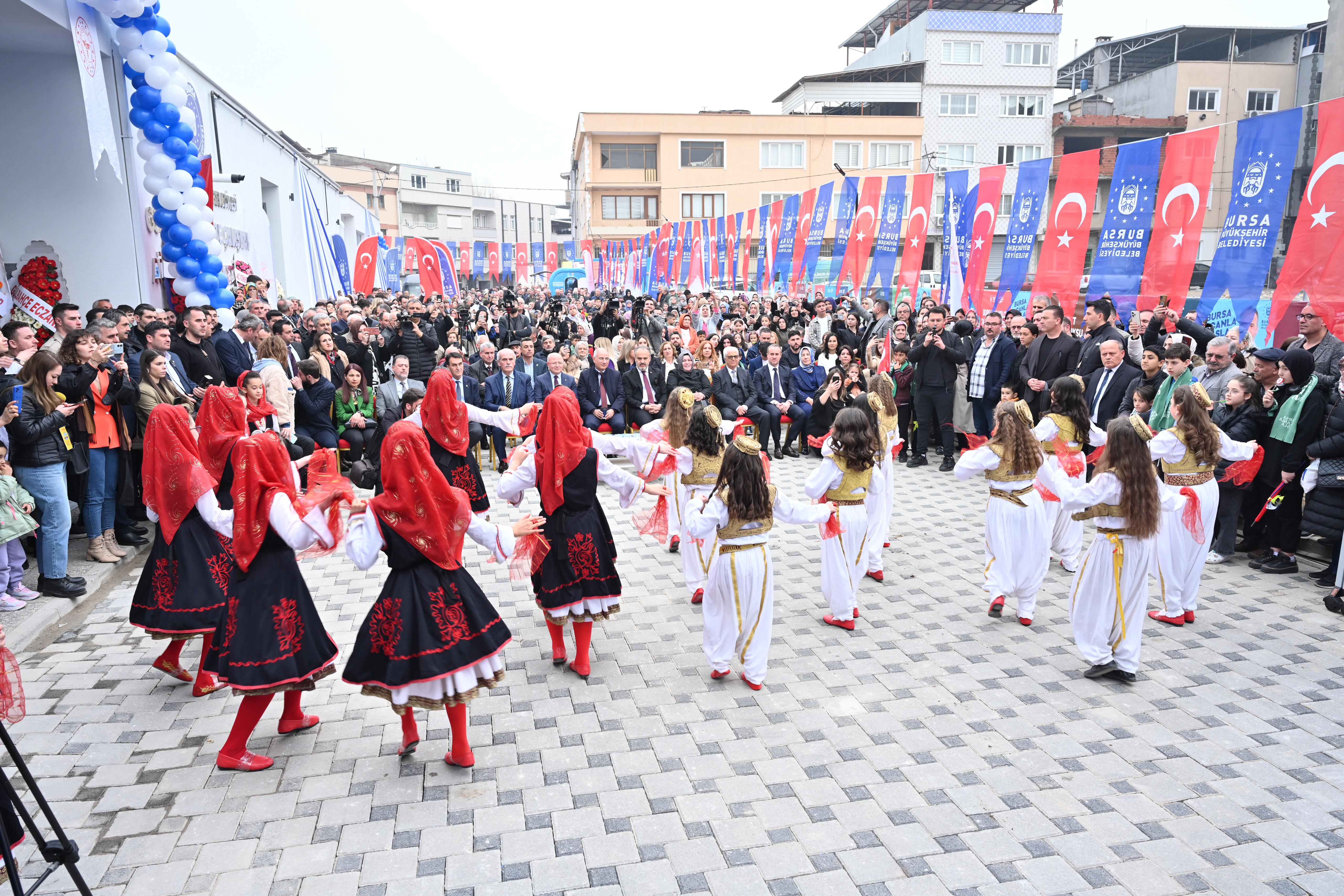 Davut Çalışkan İlkokulu Halk Oyunları ekibi gösterisiyle başlayan açılış töreninde konuşan Bursa Büyükşehir Belediye Başkanı Alinur Aktaş, Yıldırım Bayezid Han tarafından 1397'de yaptırılan ‘Yıldırım Darüşşifası’nın Osmanlı Devleti’nin ilk hastanesi olarak kabul edildiğini hatırlattı. Darüşşifanın bugün bile şifa dağıtmaya devam ettiğini söyleyen Başkan Alinur Aktaş, Bursa’nın hem sakinlerine hem de misafirlerine sağlık turizmi açısından zengin imkânlar sunduğunu belirtti. Önceki dönem Büyükşehir Belediye Başkanı Recep Altepe zamanında başlayıp, kendi döneminde çalışmaları süren eserin bugün ortaya çıktığını ifade eden Başkan Aktaş, Göreve geldiğimiz ilk günden itibaren muhtarımız ve mahalle sakinlerinin özellikle ifade ettiği konuydu. Davut Çalışkan daha öncesinde okul yaptırmış bir büyüğümüz. Ben kendisine teşekkür ediyorum. Allah sayılarını arttırsın. Hayırseverlik için ele cebe tam atmak lazım. Davut Çalışkan bunu başarabilen ve becerebilen hayırseverlerden bir tanesidir. Nihayetinde İl Sağlık Müdürlüğü’nün de destekleriyle hekimlerimiz hizmet vermeye başladığı bir alana dönüştü. Mini hastane gibi oldu desek hiç mübalağa olmaz açıkçası” dedi.