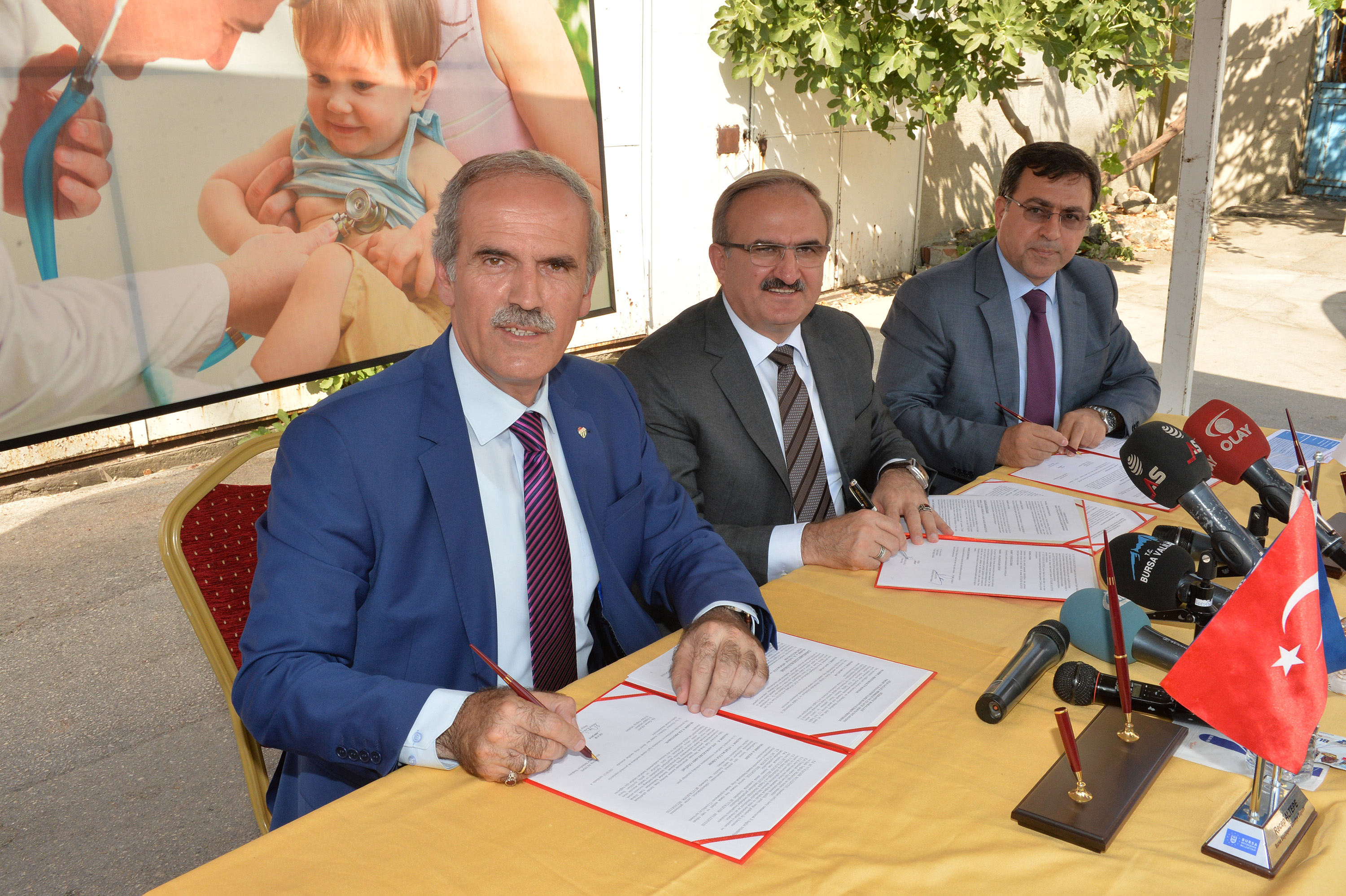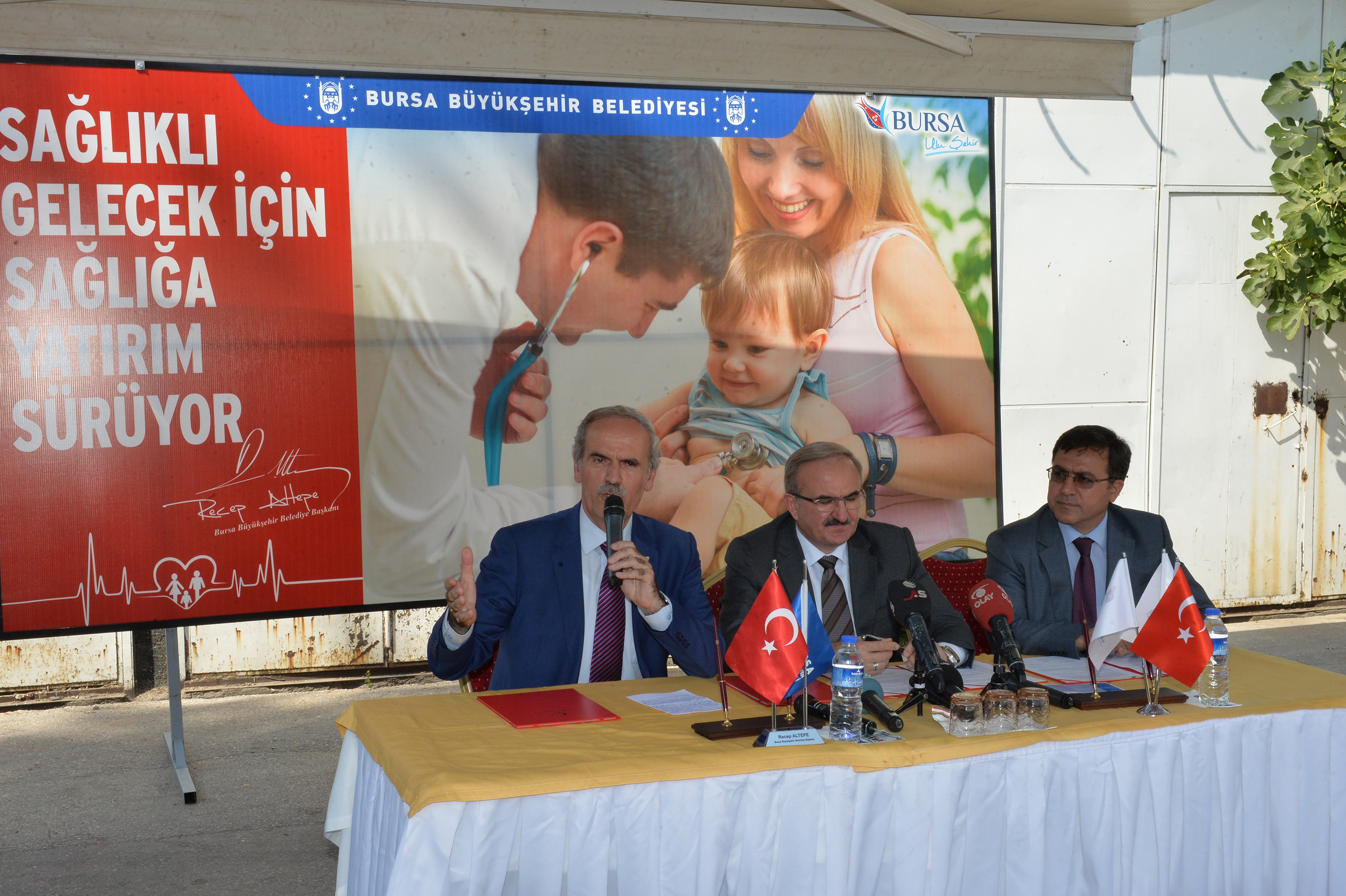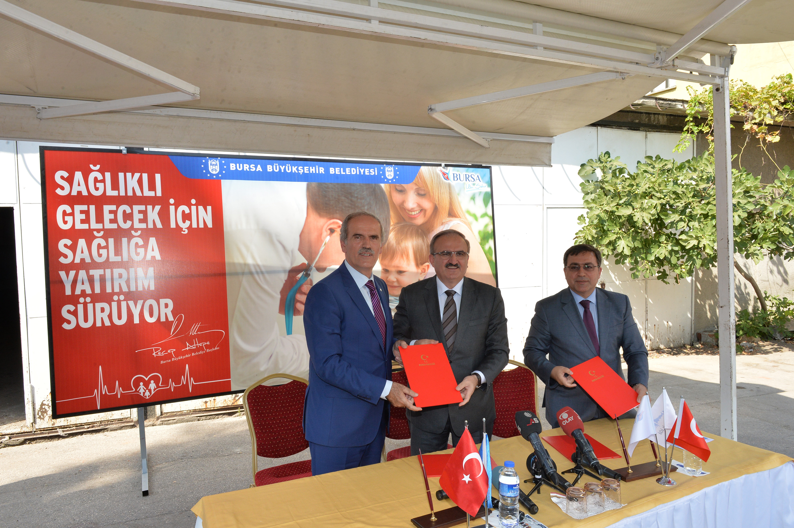 BURSA - Bursa’yı geleceğe taşıyacak projeleri bir bir hayata geçiren Büyükşehir Belediyesi, halkı doğrudan ilgilendiren yatırımlarına Şükraniye Aile Sağlığı Merkezi 112 Acil Servis İstasyonu’nu da ekledi. Bakımsız eski binasında ihtiyacı karşılamakta zorlanan Şükraniye Aile Sağlığı Merkezi’nin yıkılarak yeni sağlık merkezi ile 112 Acil Servis İstasyonu’nu da bünyesinde barındıran yeni binanın yapımına yönelik protokol, Büyükşehir Belediye Başkanı Recep Altepe, Vali Münir Karaloğlu ve İl Sağlık Müdürü Özcan Akan arasında imzalandı.