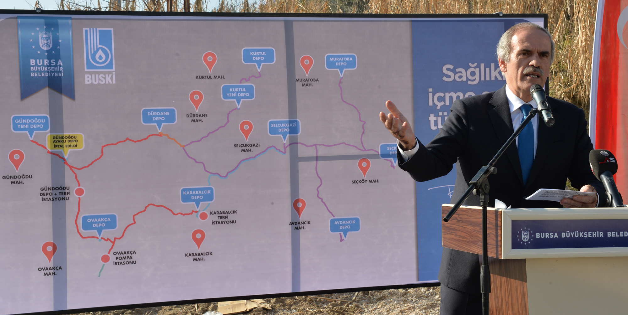 - BURSA BÜYÜKŞEHİR BELEDİYESİ TARAFINDAN YAPTIRILAN, TOPLAM 112 KİLOMETRE İSALE VE İÇME SUYU ŞEBEKE HATTI, 8 DEPO VE 3 ADET POMPA İSTASYONUNU DA BÜNYESİNDE BARINDIRAN 12 MİLYON TL’LİK YATIRIMLA OVAAKÇA VE ÇEVRESİNDEKİ 9 MAHALLE SAĞLIKLI İÇME SUYUNA KAVUŞTU.