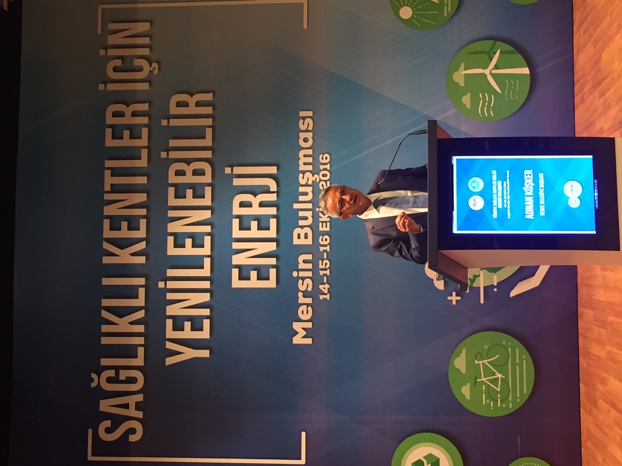 Sağlıklı Kentler Birliği Başkanvekili ve Gebze Belediye Başkanı Adnan Köşker ise üretme ve kar etme amacıyla doğan insanoğlunun çevreye verdiği zararı sonradan fark ettiğini belirtti. Her zaman olduğu gibi bugün yine üretim için enerjiye ihtiyacının vazgeçilmez bir unsur olduğuna dikkati çeken Köşker, “Fosil yakıtlara dayalı enerji üretimi ile yaşadığımız ekolojik ve çevresel sorunlar, enerjinin temiz ve sağlıklı olan yenilenebilir kaynaklardan elde edilmesini zorunlu hale getirmiştir. Bu nedenle enerji üretim yöntemlerimizi çeşitlendirmek ve yenilenebilir enerji kaynaklarını verimli bir şekilde kullanmalıyız. Ülkemizin yenilenebilir enerji kaynakları açısından oldukça zengin bir coğrafyada bulunması sevindirici. Rüzgar, güneş, jeotermal, hidrolik, biyokütle gibi birçok yenilenebilir enerji kaynağı ülke sınırlarımızda bolca mevcut ve hatta rüzgar enerjisine yönelik yatırımlara ise her gün bir yenisinin daha eklendiğini görüyoruz. Fakat tabi ki bunlar yeterli değil” şeklinde konuştu.