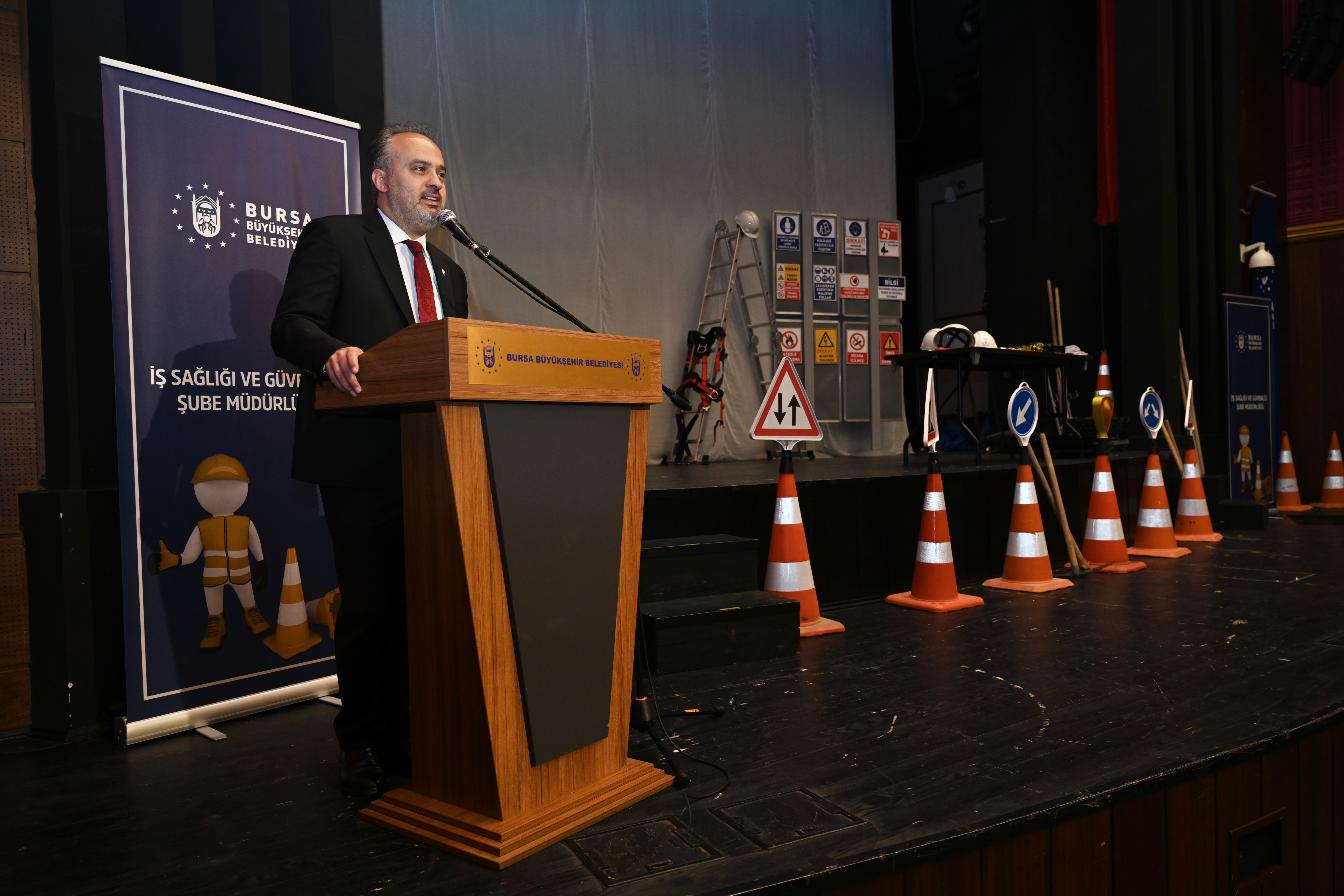 BURSA – Bursa Büyükşehir Belediyesi, 28 Nisan İş Sağlığı ve Güvenliği Günü etkinlikleri kapsamında, iş kazalarına tiyatral gösteri ile dikkat çekti. Bursa Büyükşehir Belediye Başkanı Alinur Aktaş, çok küçük dikkatsizliklerin can kayıplarına yol açtığına bile tanık olduğunu söyledi.