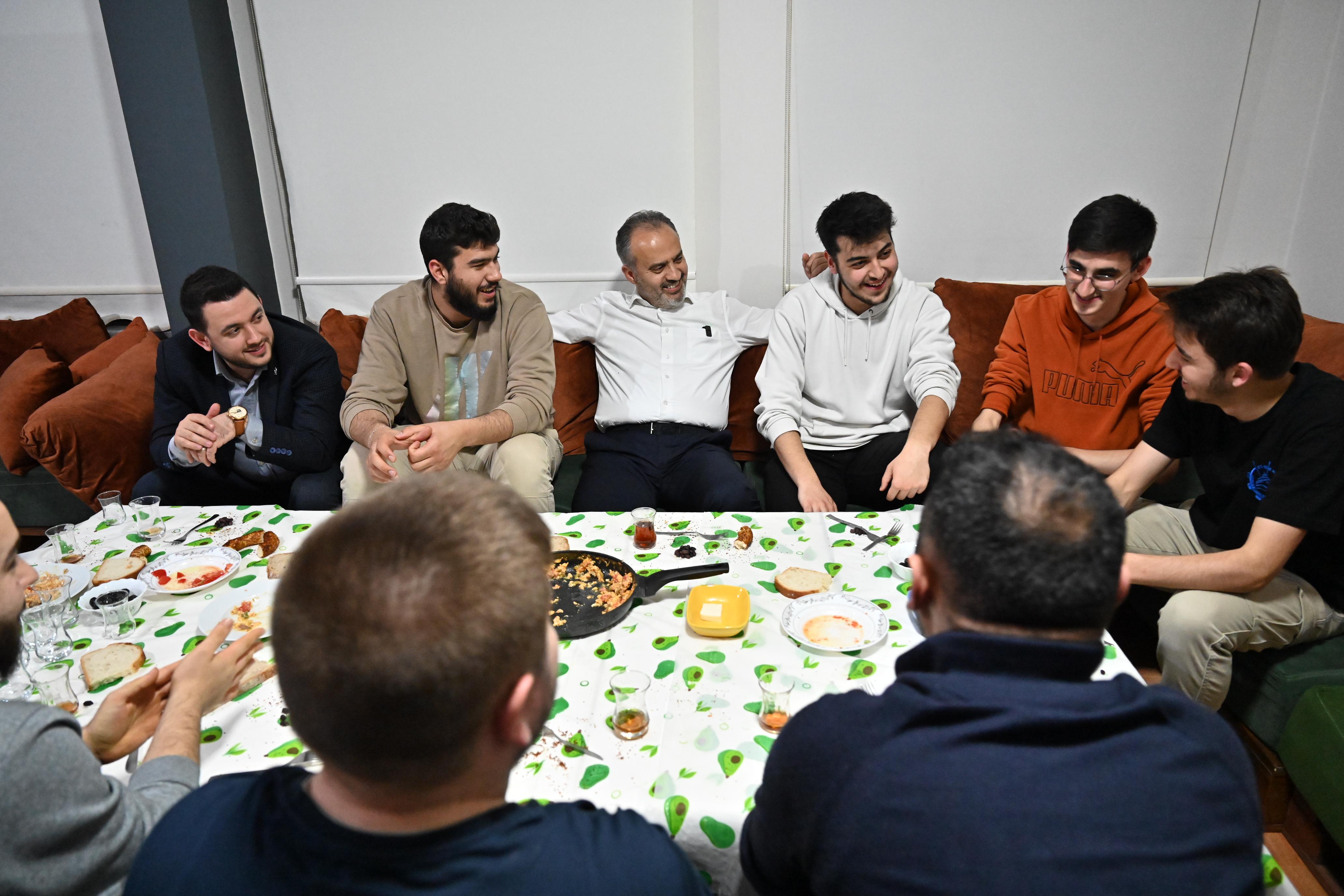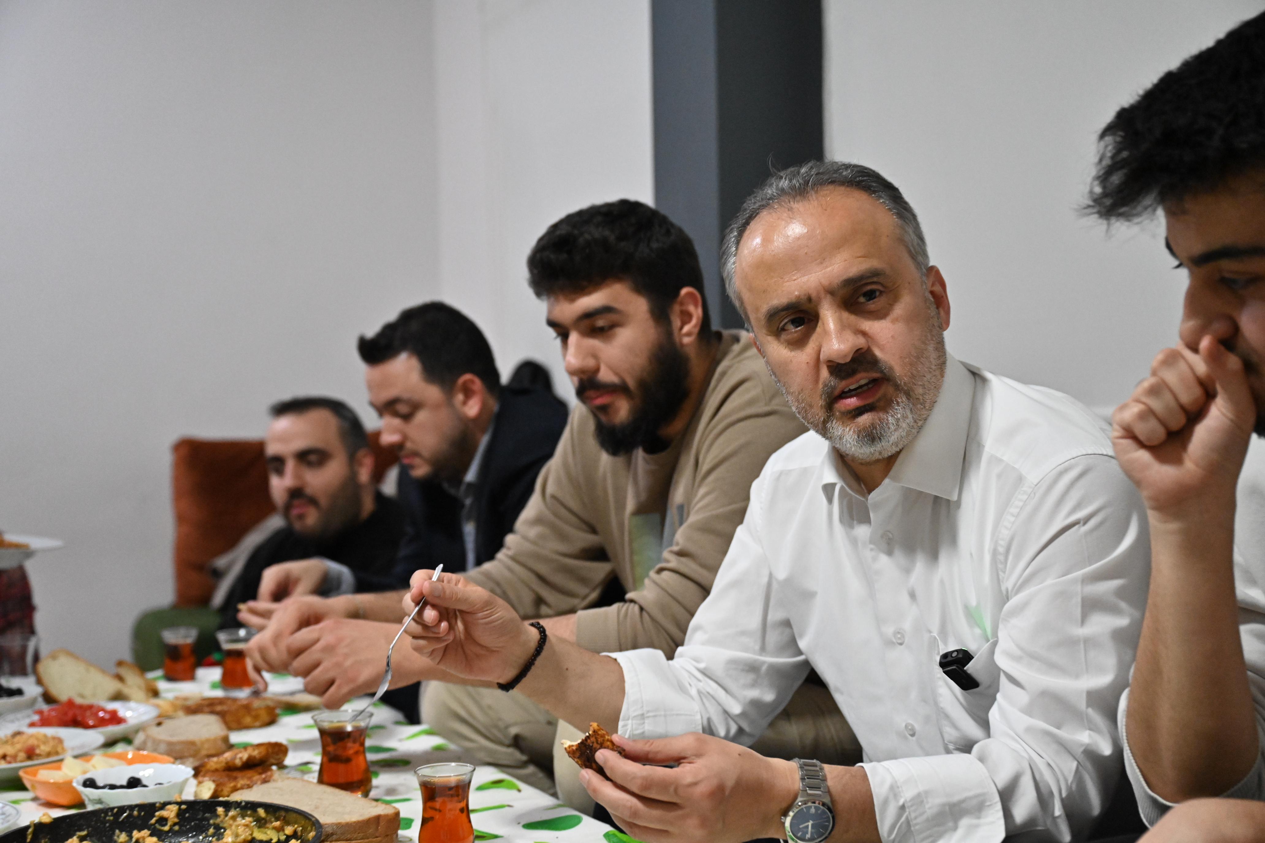 BURSA-Bursa Büyükşehir Belediye Başkanı Alinur Aktaş, kendisini sosyal medya üzerinden davet eden gençlerle birlikte sahur yaptı.