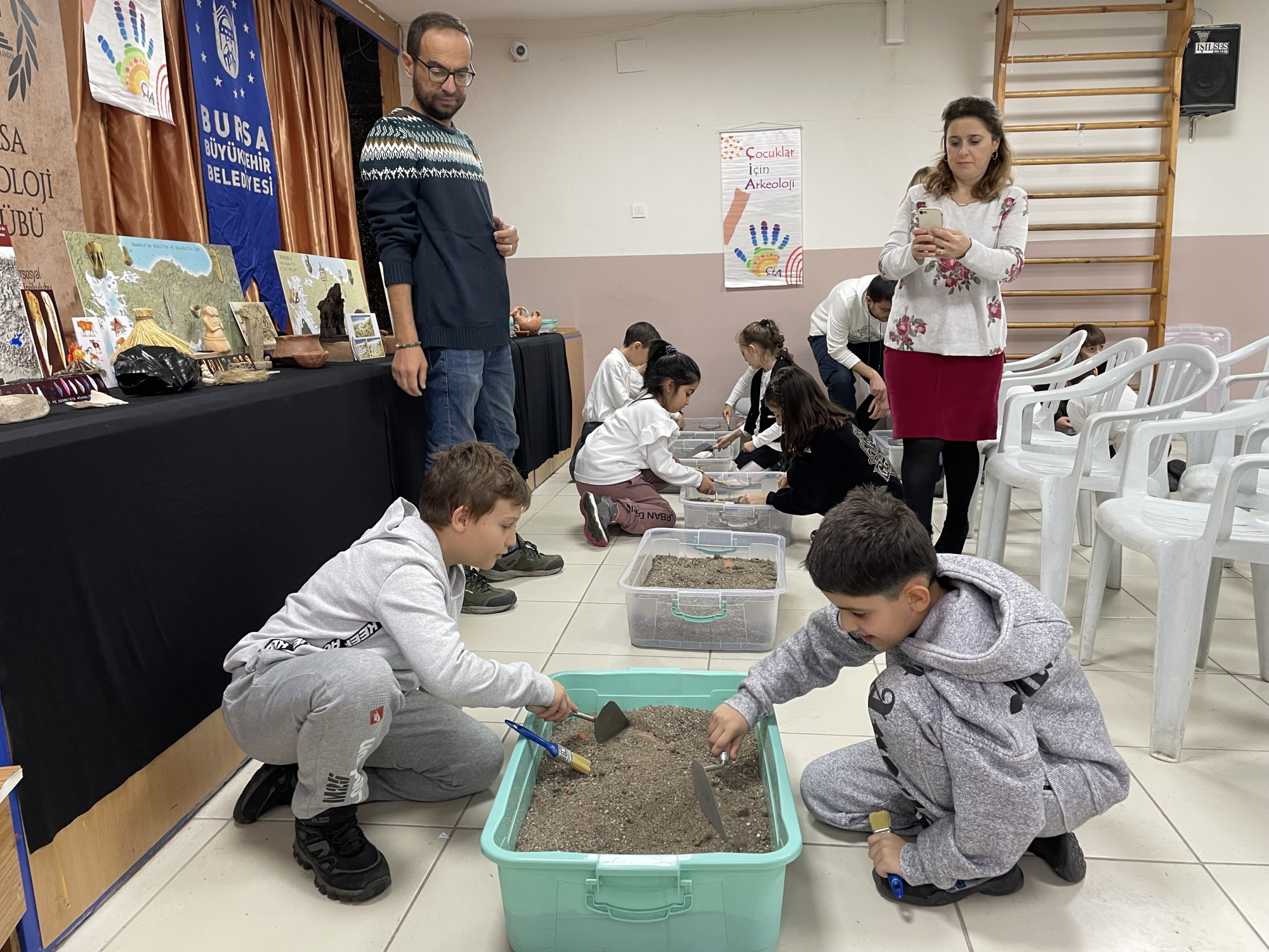 BURSA – Toplumda arkeoloji bilinci oluşturulması amacıyla Arkeoloji Kulübü aracılığıyla yetişkinlere yönelik saha uygulamaları yapan Bursa Büyükşehir Belediyesi, şimdi de Çocuklar İçin Arkeoloji işbirliğiyle ilkokul öğrencilerini zamanda yolculuğa çıkardı.