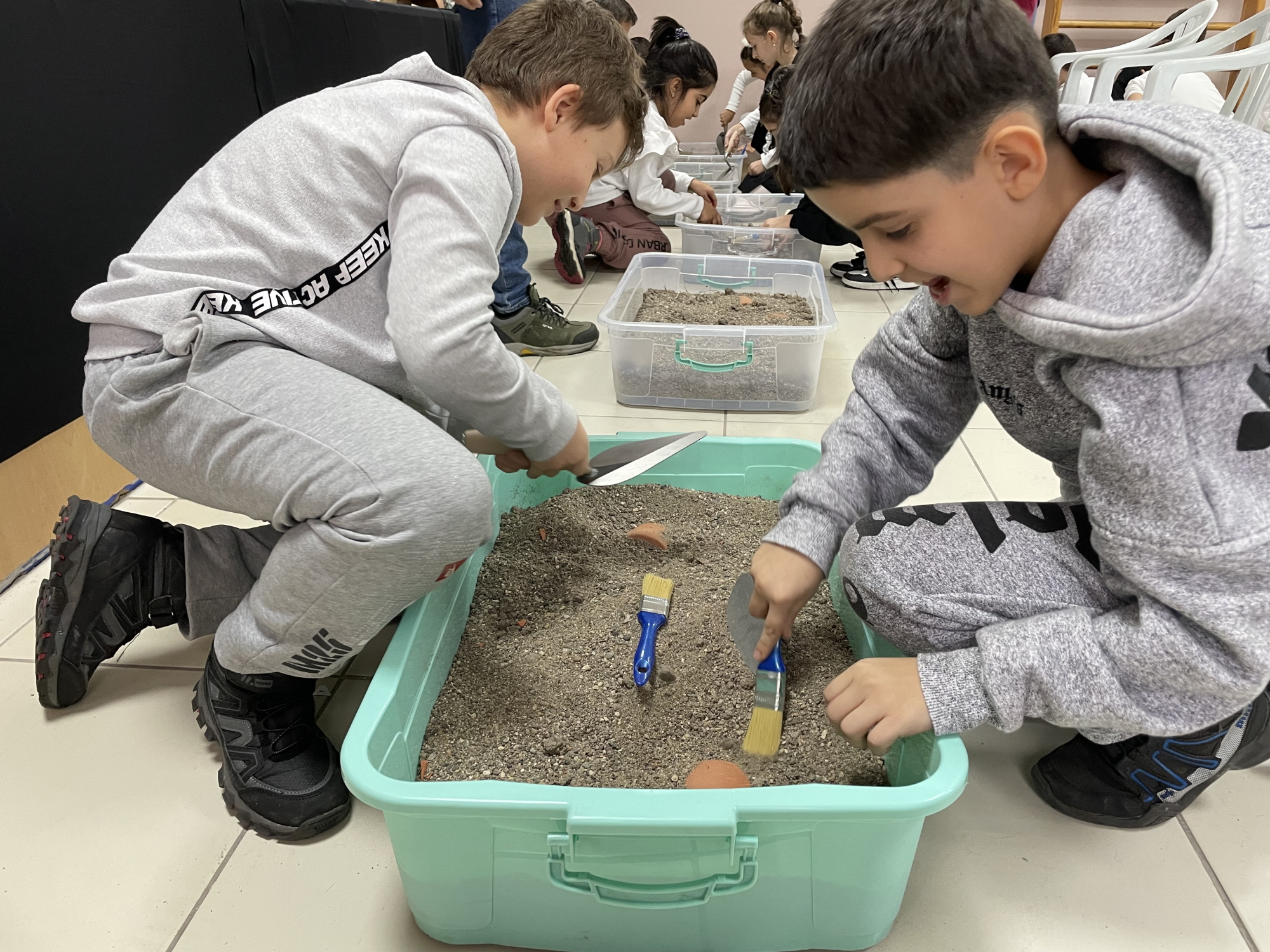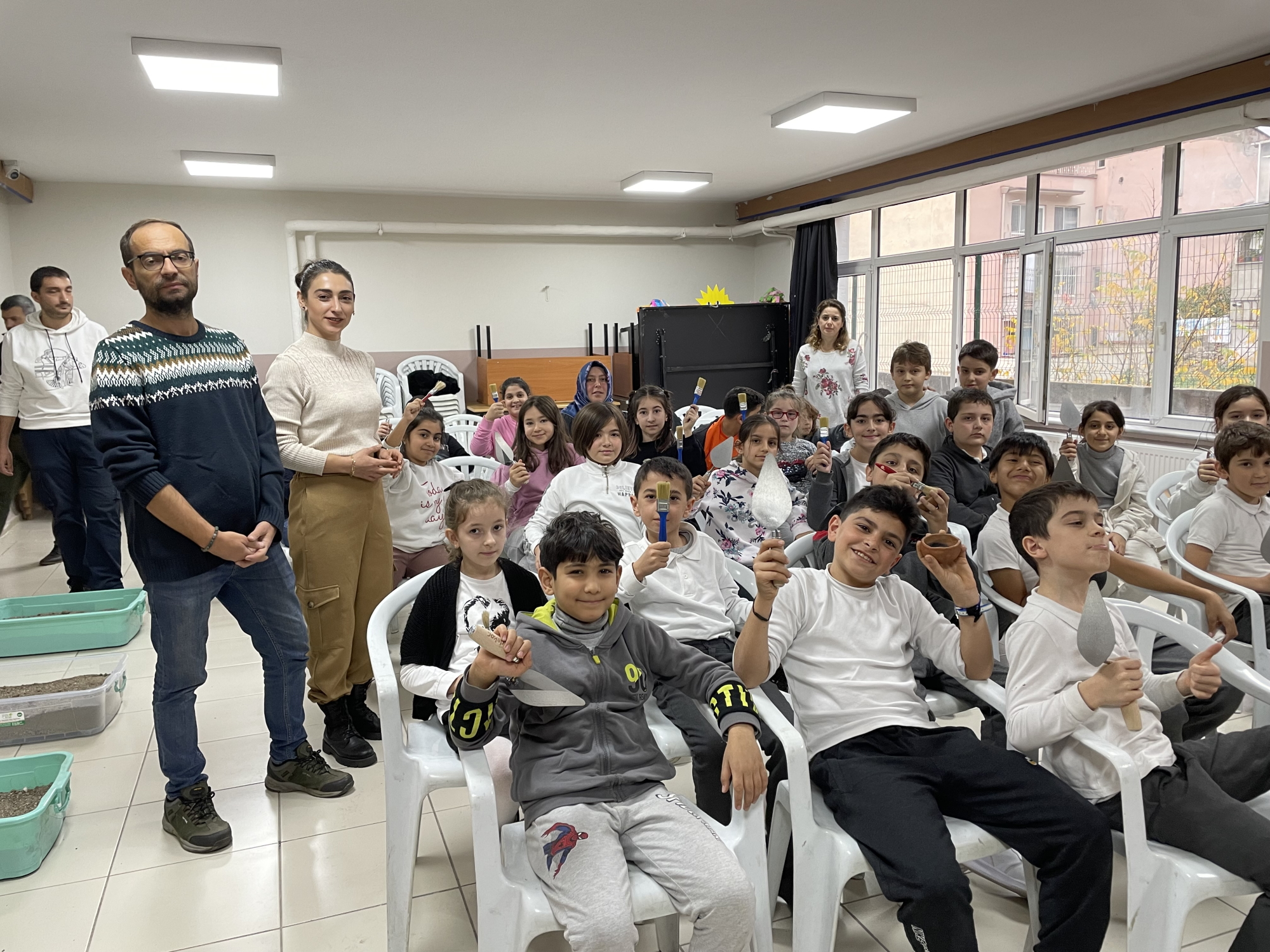 Projenin 11 Eylül İlkokulu’ndaki etabı oldukça renkli görüntülere sahne oldu. Okulun çok amaçlı salonu adeta kazı alanına dönüşürken, Çocuklar İçin Arkeoloji’den Arkeolog Ceren Özçelik Han, öncelikle bilgilendirme sunumu yaptı. Daha sonra arkeolojik kazı atölyesine katılan küçük öğrenciler, farklı bir kazı deneyimine ortak olmanın mutluluğunu yaşadı. Çocuklara arkeoloji bilimini tanıtmak, arkeologların çalışma prensiplerini öğretmek ve kültür varlıkları hakkında bilgi edinmelerini sağlamak için 2019 yılından beni çalıştıklarını belirten Han, “Bursa Büyükşehir Belediyesi öncülüğünde Bursa Arkeoloji Kulübü ile sağladığımız işbirliğinde 50 farklı okulda sene boyunca çocuklarımızla buluşmak üzerine yola çıktık. Oldukça verimli çalışmalar gerçekleştiriyoruz. Çocuklarımız tarih öncesi çağları öğreniyor. Aynı zamanda da bir kazı simülasyonu ile deneysel arkeolojiye de adım atıyorlar. Oldukça verimli geçen bir çalışma oldu. Bursa Büyükşehir Belediyesi'ne çok teşekkür ederiz” dedi.