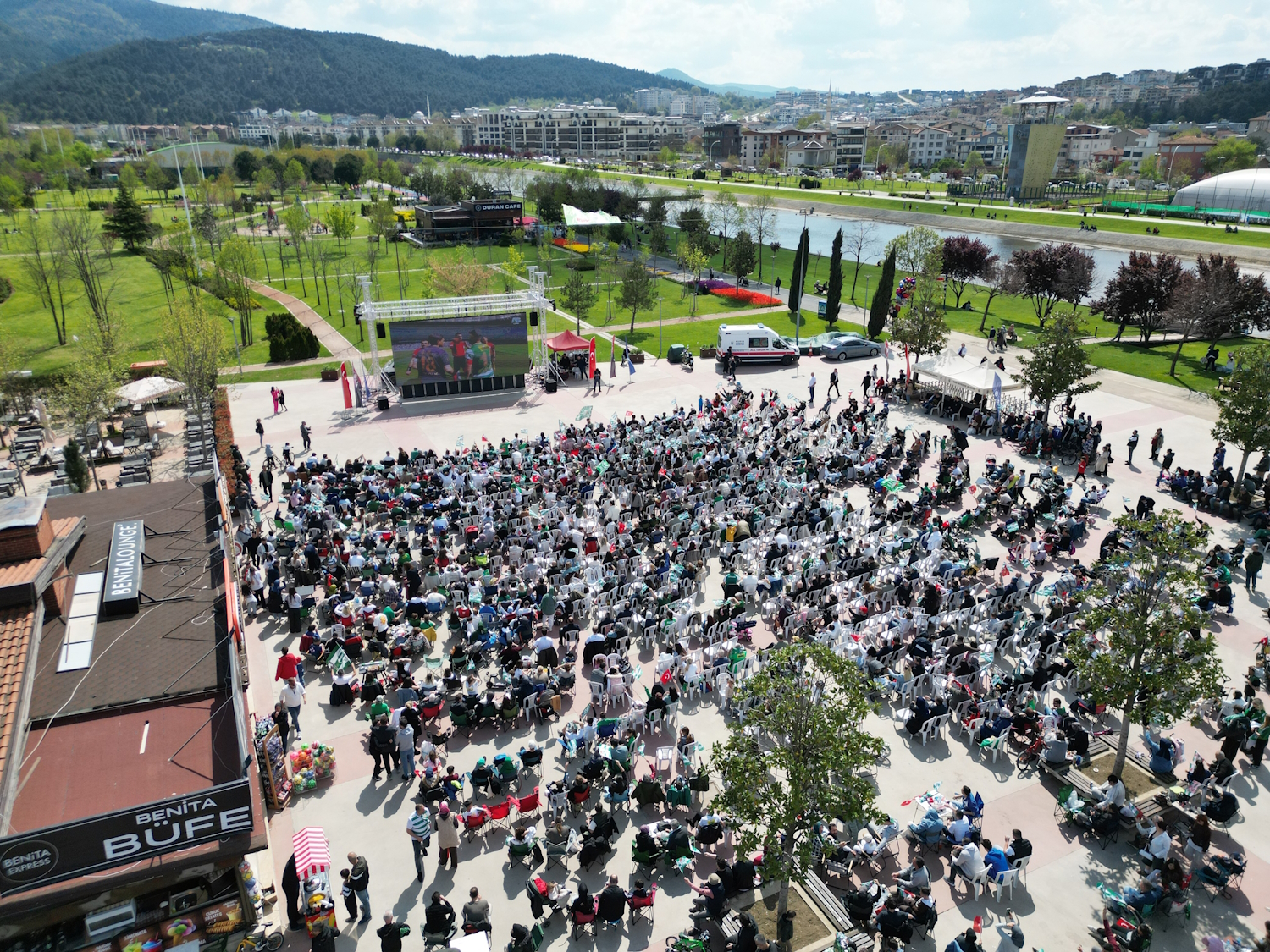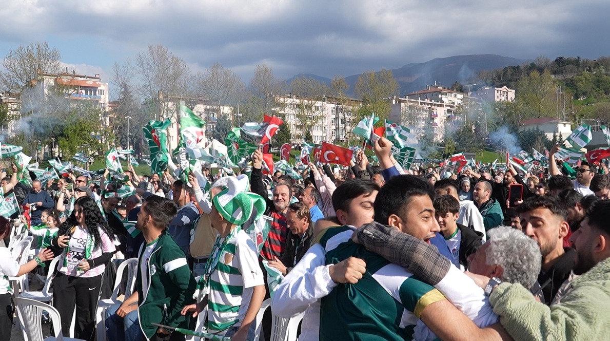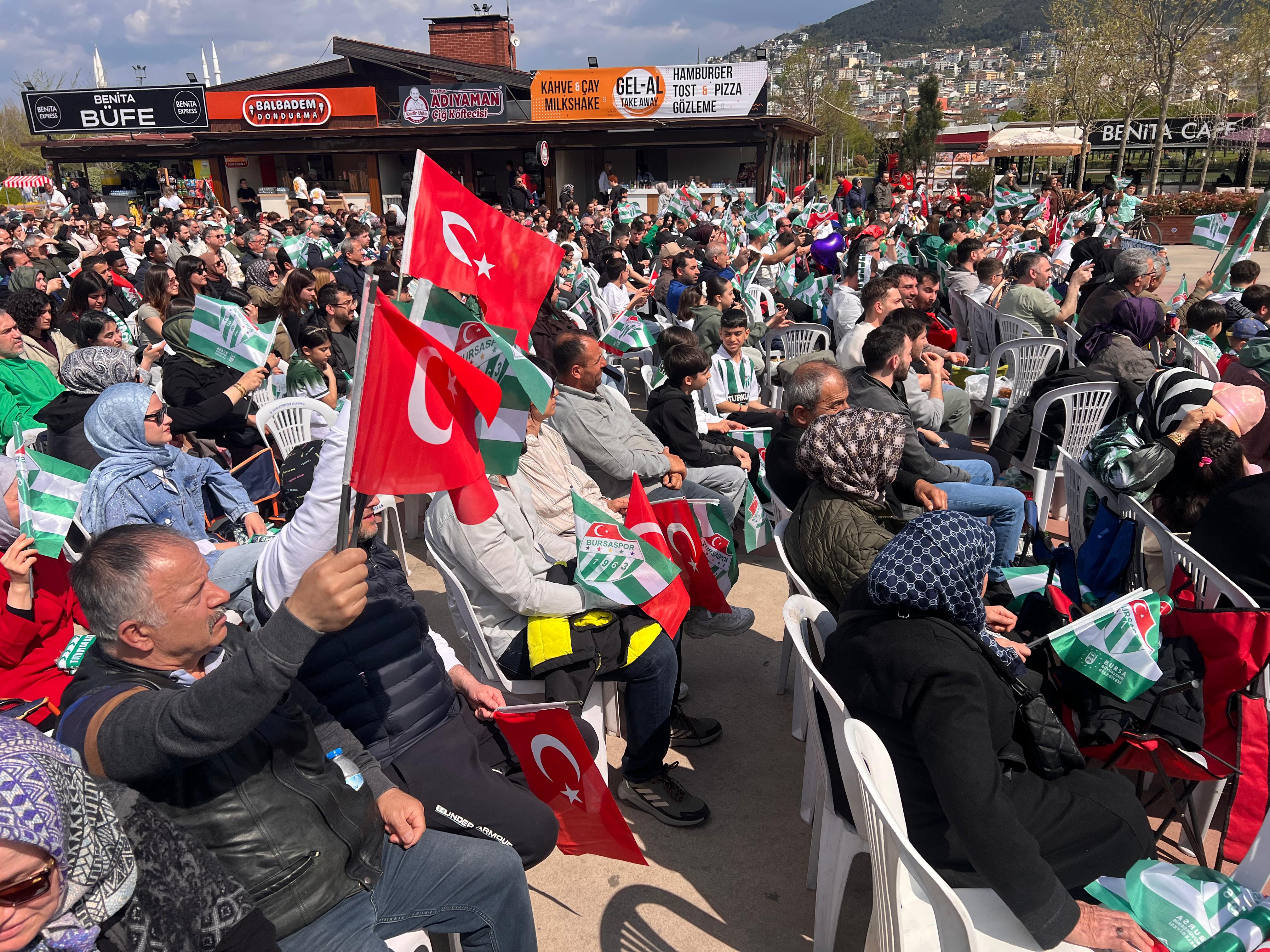 - BURSA BÜYÜKŞEHİR BELEDİYESİ TARAFINDAN KURULAN DEV EKRANLARDAN BURSASPOR MAÇINI İZLEYEN YEŞİL BEYAZLI TARAFTARLAR, BİTİŞ DÜDÜĞÜYLE BİRLİKTE ŞAMPİYONLUK COŞKUSUNU DOYASIYA YAŞADI.