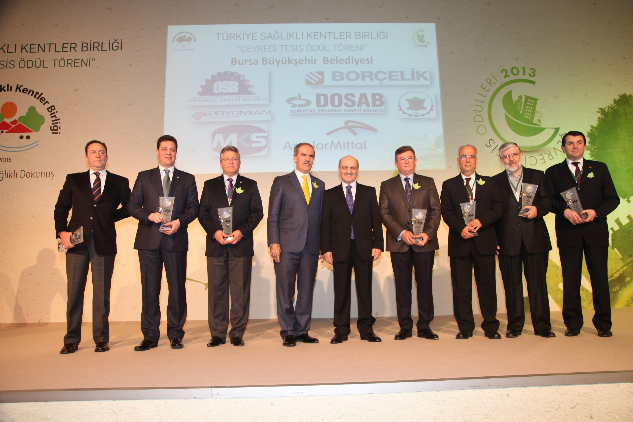 Türkiye Sağlıklı Kentler Birliği’nin geçtiğimiz yıl pilot uygulamasını Bursa’da yaptığı çevreci tesis ödülleri töreni İstanbul The Four Seasons Bosphorus Hotel’de yapıldı. Sunuculuğunu tiyatro sanatçısı Toprak Sergen’in yaptığı törene Sağlıklı Kentler Birliği ve Bursa Büyükşehir Belediye Başkanı Recep Altepe, Çevre ve Şehircilik Bakanı Erdoğan Bayraktar, birliğe üye belediye başkanları, meclis üyeleri ve ödüle layık görülen firma temsilcileri katıldı.