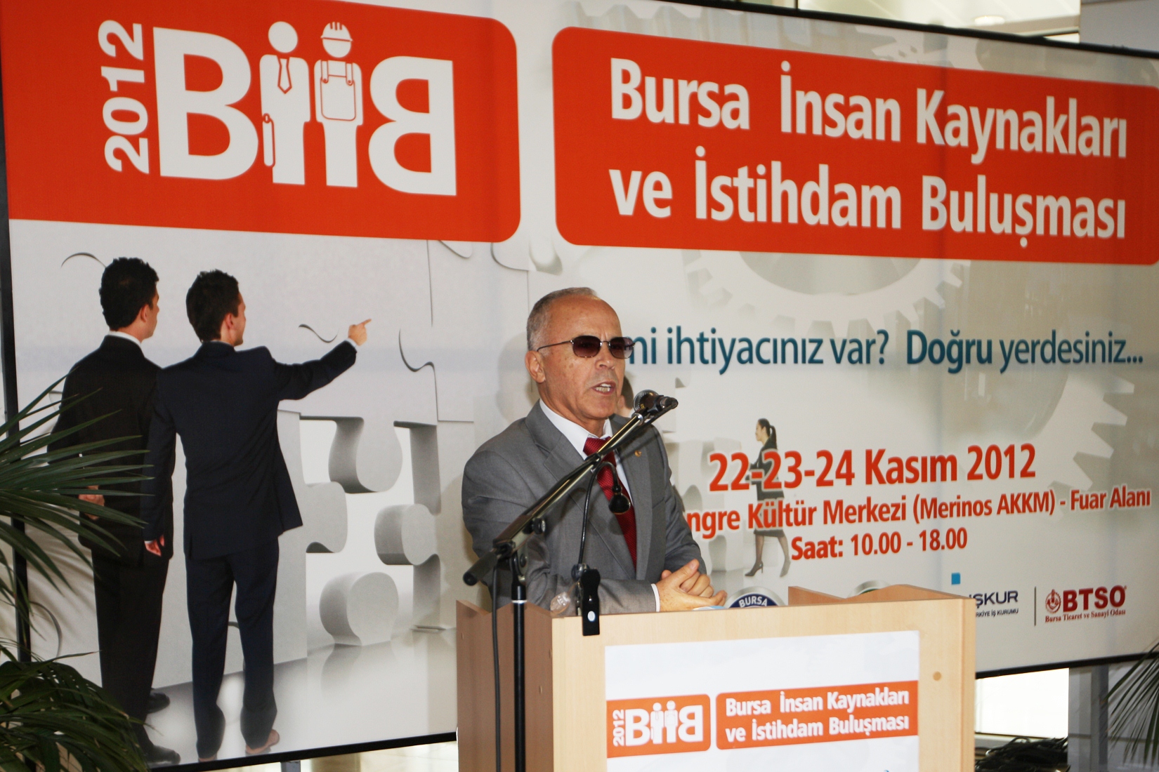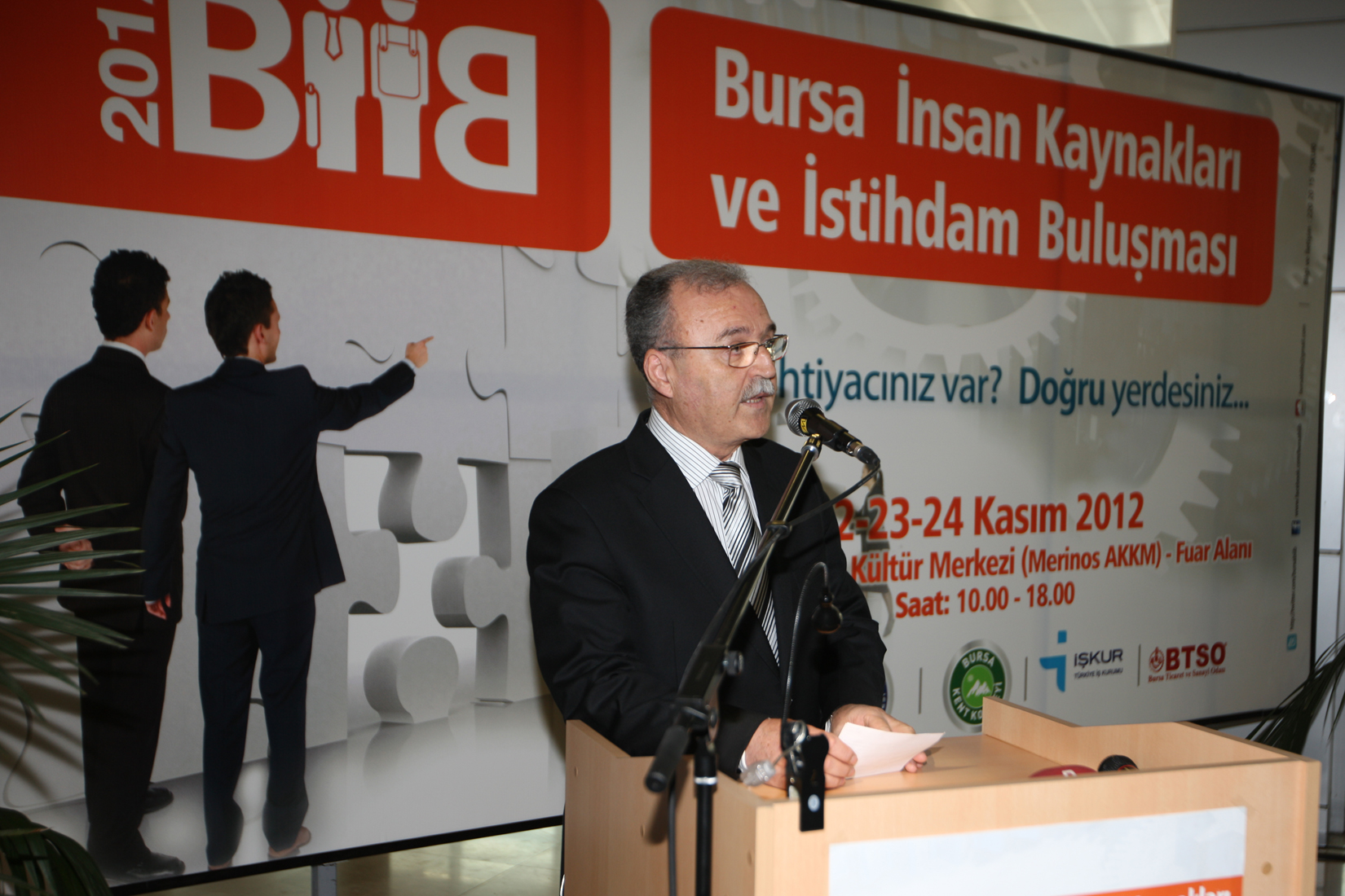 BİİB 2012´nin açılışında konuşan Türkiye İş Kurumu (İŞKUR) Personel Dairesi Başkanı Necmettin Esen de, işsizliğin sadece Türkiye için değil dünya için büyük sorun olduğunu kaydetti. Son ekonomik krizle birlikte en gelişmiş ülkelerde bile milyonlarca kişinin işini kaybettiğini dile getiren Esen, reform niteliğinde tedbirler ve sürekli büyüyen ekonomiyle Türkiye´nin bundan en az etkilenen ülke olduğunu vurguladı. Esen, İŞKUR olarak BİİB 2012´ye destek vermekten büyük mutluluk duyduklarını söyledi.