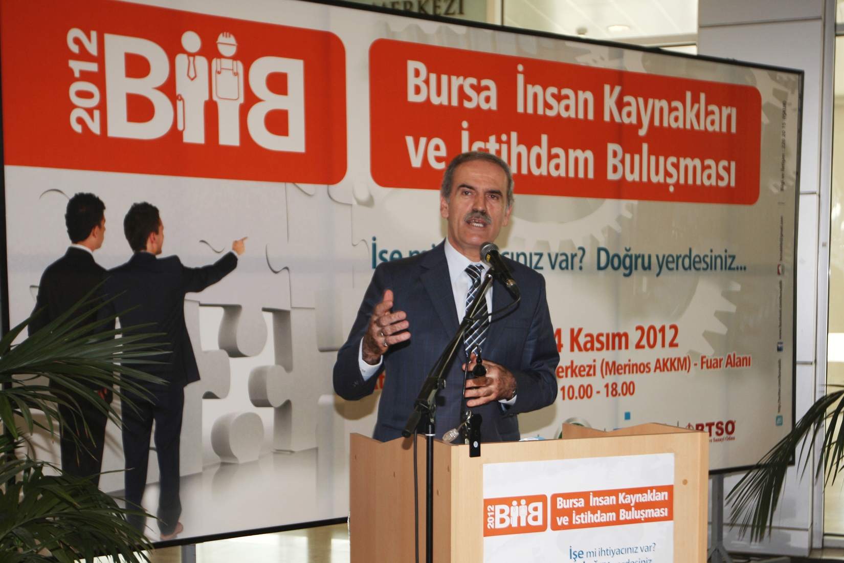 Toplam 147 firmanın yer aldığı Bursa İnsan Kaynakları ve İstihdam Buluşması (BİİB 2012), Merinos Atatürk Kongre ve Kültür Merkezi´nde (AKKM) başladı. İşçi ile işverenin buluşturulduğu, 3 gün sürecek organizasyonun açılışına; Büyükşehir Belediye Başkanı Recep Altepe, Bursa Vali Yardımcısı Hüseyin Eren, Nilüfer Belediye Başkanı Mustafa Bozbey, Bursa Kent Konseyi Başkanı Mehmet Semih Pala, DOSABSİAD Başkanı Selim Yedikardeş ve sanayici Fahrettin Gülener de katıldı.