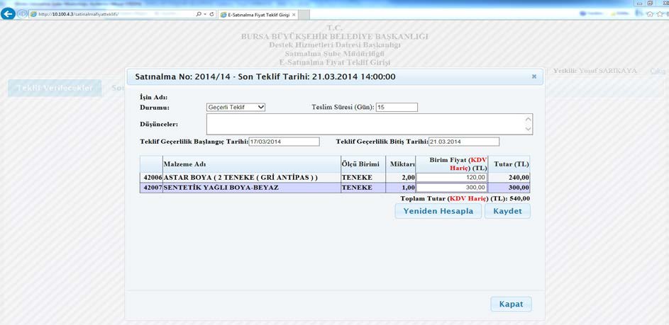 - BÜYÜKŞEHİR BELEDİYESİ SATINALMA ŞUBE MÜDÜRLÜĞÜ SORUMLULUK ALANINDAKİ DOĞRUDAN TEMİN SÜREÇLERİNE FİRMALARIN TEKLİF VERMESİNE ELEKTRONİK ORTAM DA EKLENDİ.