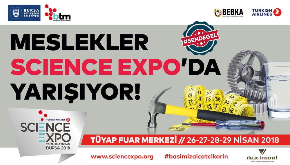 Her bölümde 32 öğrenci ekibinin mücadele edeceği ‘Meslekler Yarışıyor kategorisinde dereceye girenler, birbirinden özel ödüllerin sahibi olacak. Yarışmada birinci olan ekibe tablet, ikinciye robot seti ve üçüncüye Bursa Bilim ve Teknoloji Merkezi’nde (Bursa BTM) ücretsiz aile etkinlikleri ödülü verilecek. Science Expo’ya renk katacak olan Meslekler Yarışıyor kategorisinin kazanan ekipleri, dünyada beceri yarışmaları olarak bilinen ve oldukça geniş kitleye hitap eden WorldSkills International’da Türkiye ve Bursa’yı temsil etme hakkı kazanacak. Science Expo Meslekler Yarışıyor’a katılmak isteyenler, www.sciencexpo.org/ adresinden başvurularını 15 Nisan 2018 tarihine kadar yapabilecek.