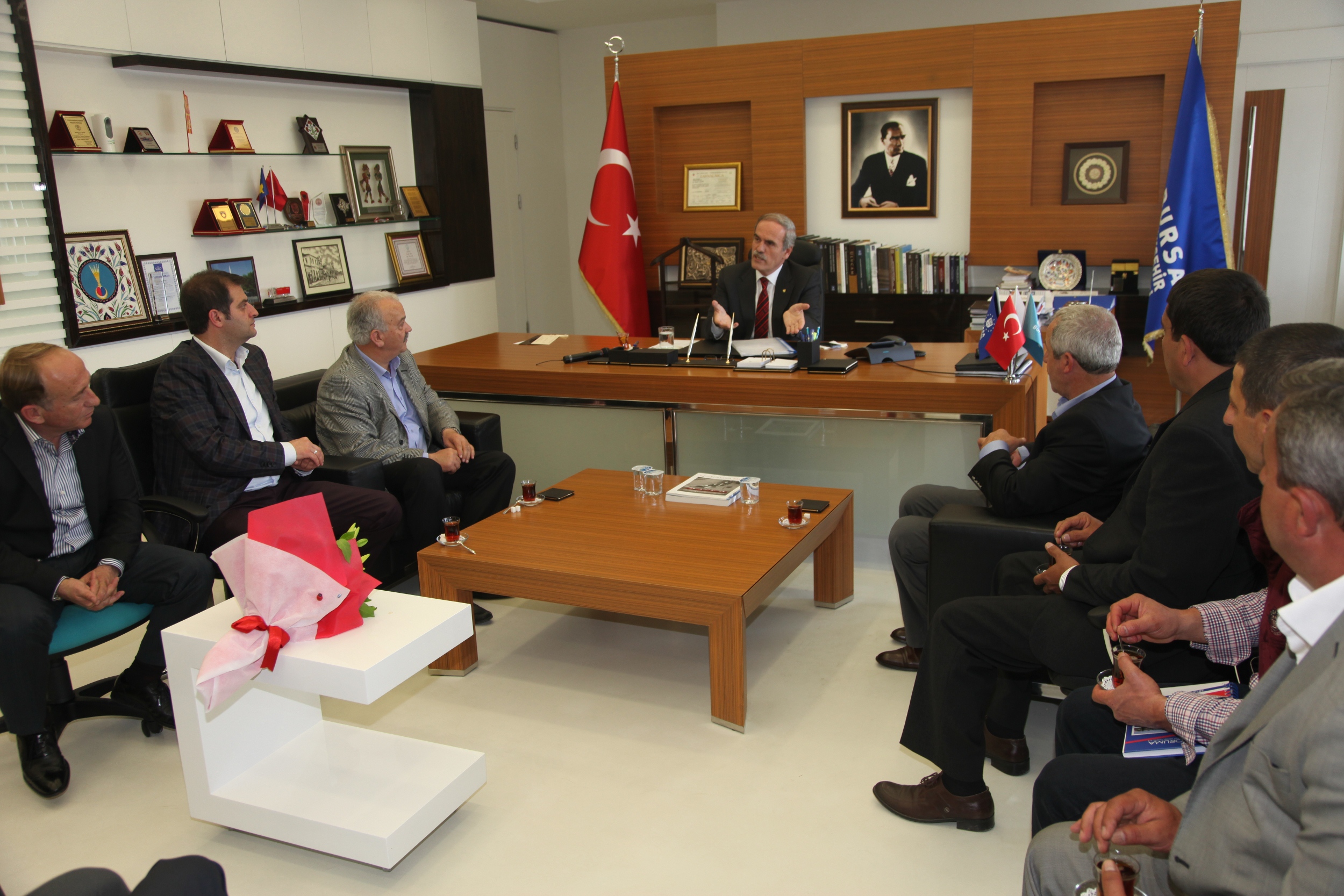 Bursa’da ikinci kez Büyükşehir Belediye Başkanı seçilerek, halkın huzuru ve mutluluğu için çalışmalarına aralıksız devam eden Büyükşehir Belediye Başkanı Recep Altepe’ye tebrik ziyaretleri sürüyor. Başkan Altepe, Bursa Defterdarı Hidayet Mat, Türkiye Genç İş Adamları Derneği (TÜGİAD) Bursa Şubesi Yönetim Kurulu üyeleri, Harun Akın ve Yusuf Dündar ile Mudanya İlçesi Yörük Ali, Eşkel, Göynüklü ve Ülkü Köyü muhtarlarını BURULAŞ’taki makamında ağırladı.