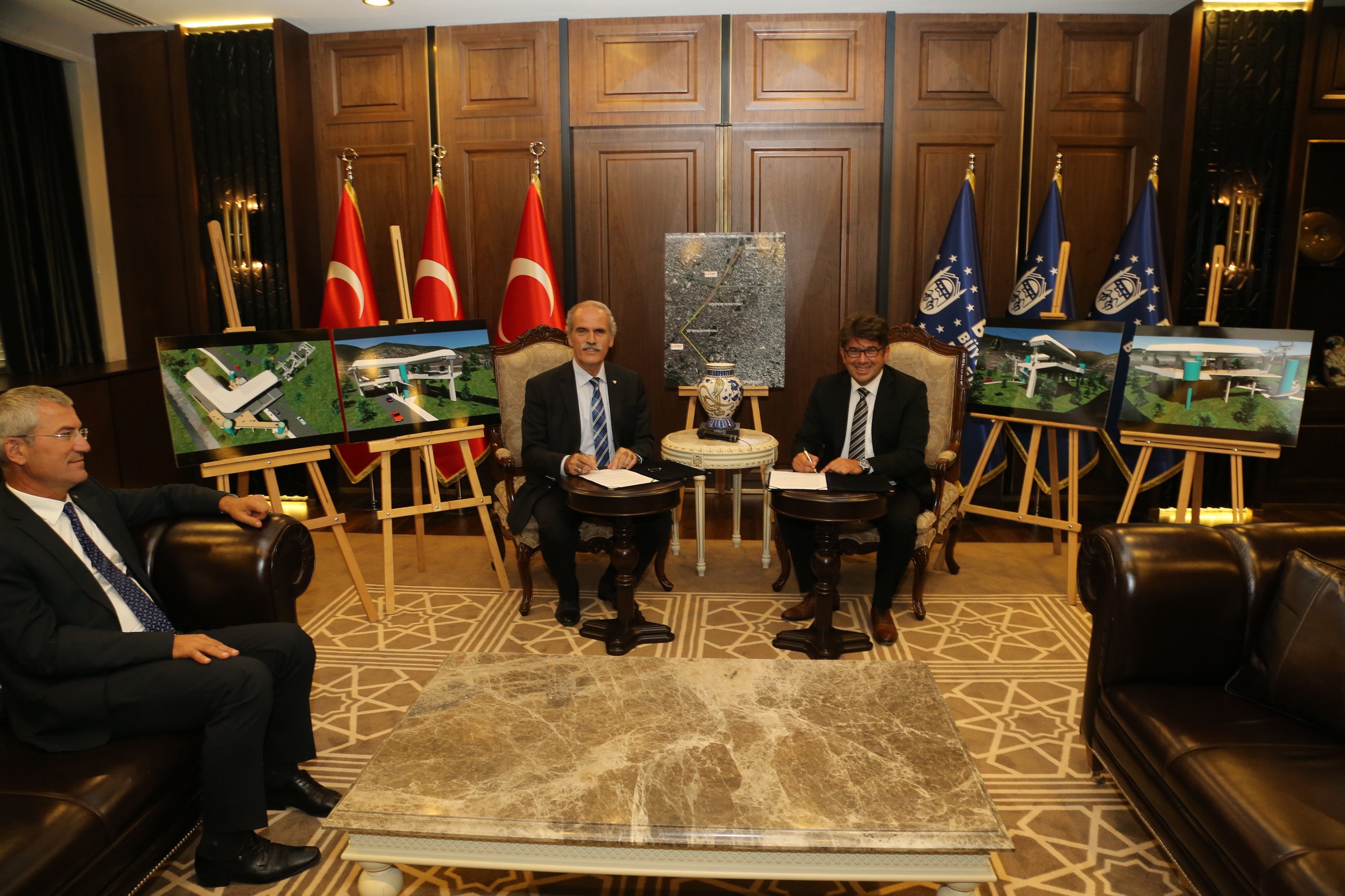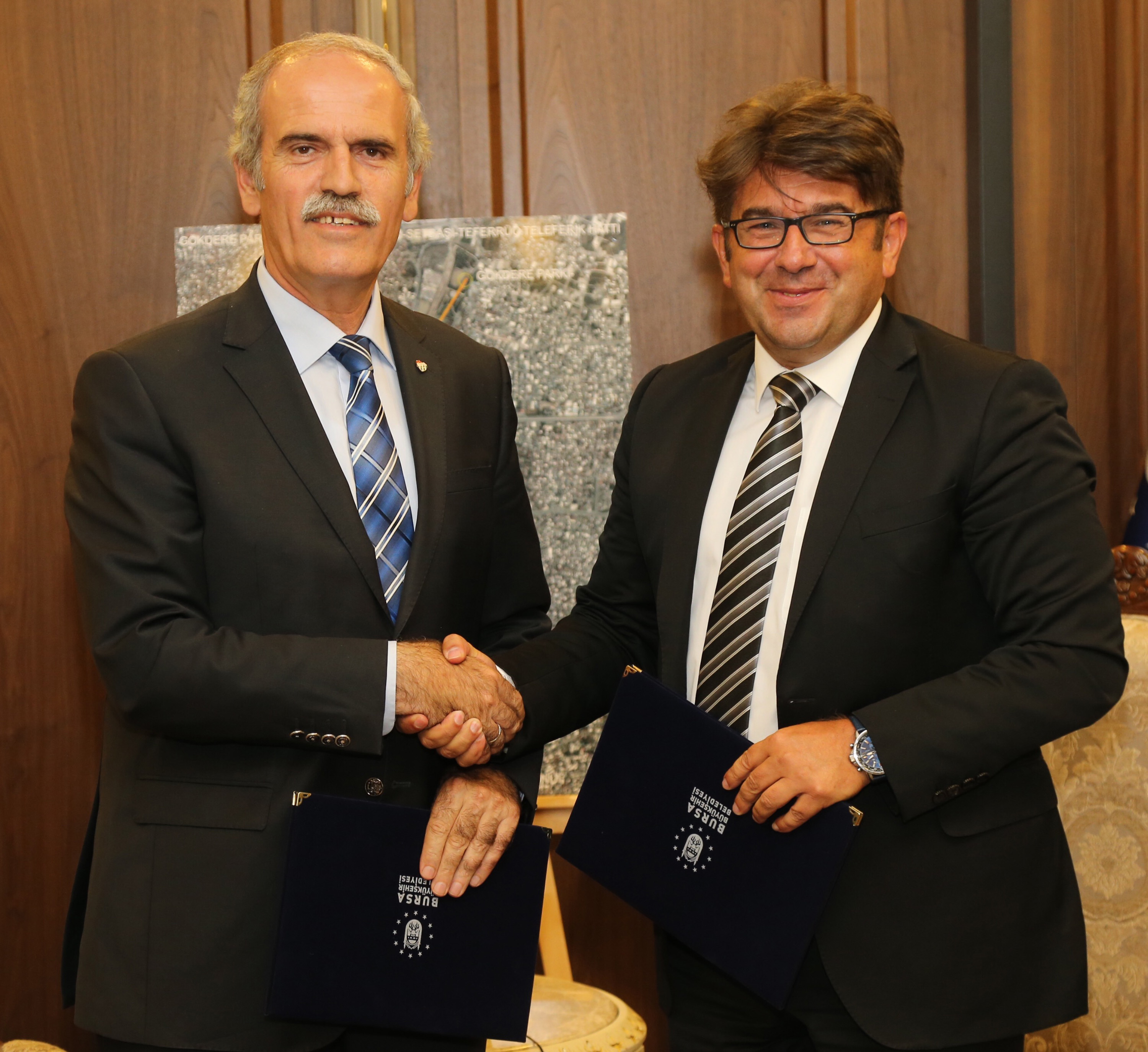 - GÖKDERE METRO İSTASYONU İLE TEFERRÜÇ ARASINDA YAKLAŞIK 1 YILDA TAMAMLANMASI HEDEFLENEN TELEFERİK HATTI İLE İLGİLİ PROTOKOL, BURSA BÜYÜKŞEHİR BELEDİYE BAŞKANI RECEP ALTEPE İLE BURSA TELEFERİK AŞ. YÖNETİM KURULU BAŞKANI İLKER CUMBUL ARASINDA İMZALANDI.