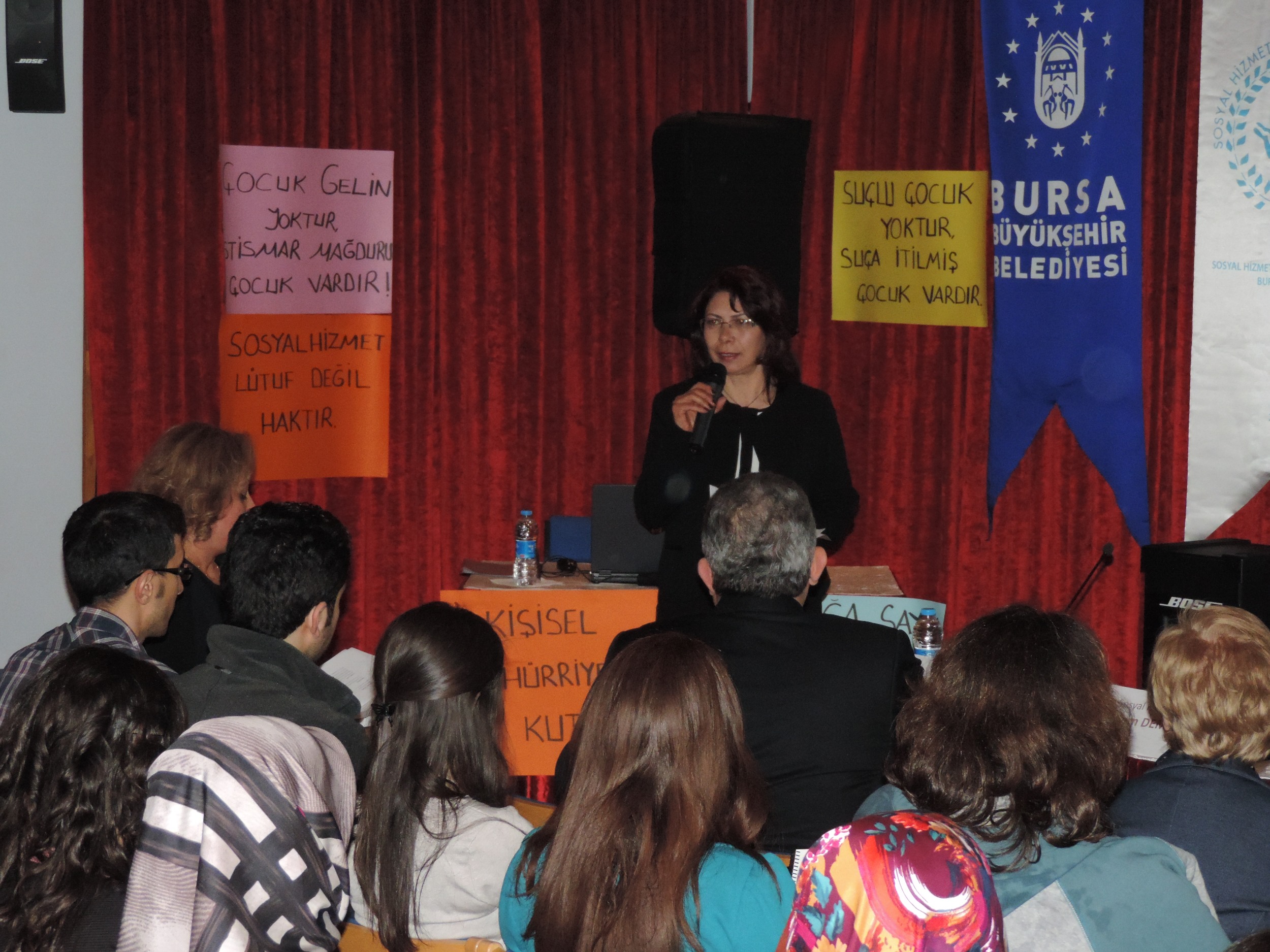 Büyükşehir Belediyesi ve diğer kurumlarda görev yapan sosyal hizmet uzmanlarını buluşturan panel, hazır bulunduğu panel, sosyal hizmet eğitiminin Türkiye’deki duayenlerinden Hacettepe Üniversitesi Sosyal Hizmetler Yüksekokulu eski müdürü Prof. Dr. A. Beril Tufan’ın ‘Bir hak olarak sosyal hizmet’ konulu sunumuyla başladı. Sosyal Hizmet Uzmanları Derneği Genel Başkanı Murat Altuğgil de açıklamasında, sosyal hizmet uzmanlarının mesleki özgürlük, önyargı ve taraf halinden arınmaya ve örgütlenmeye ihtiyaç duyduklarını ifade etti. Mesleki bir uygulama örneği sunumu yapan Uludağ Üniversitesi Çalışma Ekonomisi ve Endüstri İlişkileri Bölümü Başkanı Prof. Dr. Serpil Aytaç ise eski hükümlülerin toplumla bütünleşebilmesinin önündeki en önemli engelin iş bulmadaki güçlükler olduğunu söyledi, konuyla ilgili mevzuat değişiklikleri hakkında bilgiler verdi. Panelin sonunda panelistlere ve katılımcılara teşekkür eden Sosyal Hizmet Uzmanları Derneği Bursa Şube Başkanı Elmas Arı Bursa’da bir üniversitede ‘Sosyal Hizmet’ bölümü açılmasına duyulan acil ihtiyaca dikkati çekti.