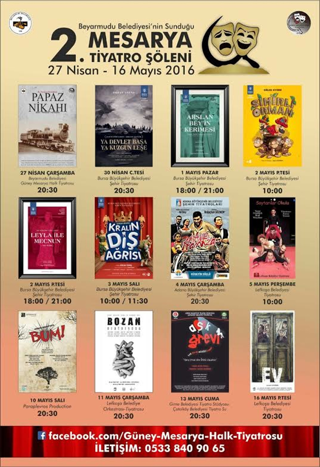 - Bursa Büyükşehir Belediyesi Şehir Tiyatrosu 5 oyun, 9 performansla KKTC’de düzenlenen ‘2. Mesarya Tiyatro Şöleni’nde sahne alacak.
